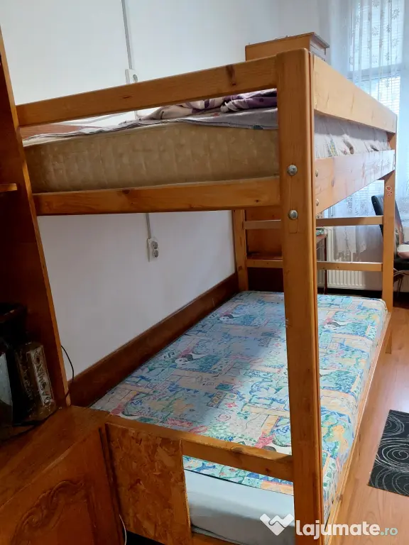 Vând 2 paturi suprapuse, 4 locuri de dormit cu scarita din lemn.