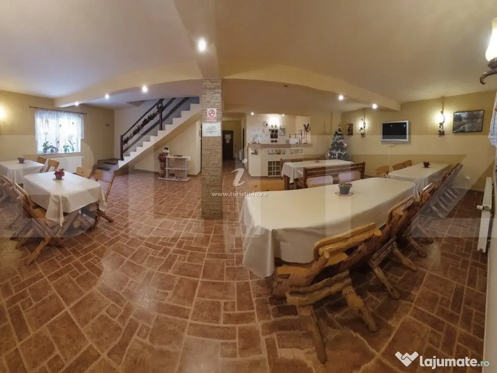 Blitz va propune pensiune la 200m de Cheile Gradistei, pe malul paraului Turcu. 6 camere duble, 3 camere superioare, 1 apartament cu bucatarie proprie și intrare separată. Pensiunea mai dispune de 1 foisor inchis (incalzire, Tv ), acces la rau din curte, si 1 foisor 16 persoane cu gratar, inca 3 foisoare a cate 6 persoane pe malul paraului, living 1 (sala de mese de 80 mp), living 2 (35 mp, 16 locuri), 2 Lcd, bucatarie utilata( 2 chiuvete, 2 aragazuri, cuptor microunde, toaster, filtru de cafea, fierbator, frigider); incalzire centrala, apa calda non-stop; curte amenajata cu alei si gazon, sezlonguri, imprejmuita cu gard, iluminata, parcare iluminata; loc de joaca pentru copii compus din complex de joaca(turnulet, topogan, rampa de catarare, groapa nisip+accesorii, 2 leagane-unul cu sistem siguranta bebe) trambulina, balansoar, topogan, casuta, 2 gratare. Spatiile comune sunt supravegheate video. Cod ofertă / ID BLITZ: P160217 Id intern: P160217 Stadiu construcţie: Finalizat Număr încăperi: 12