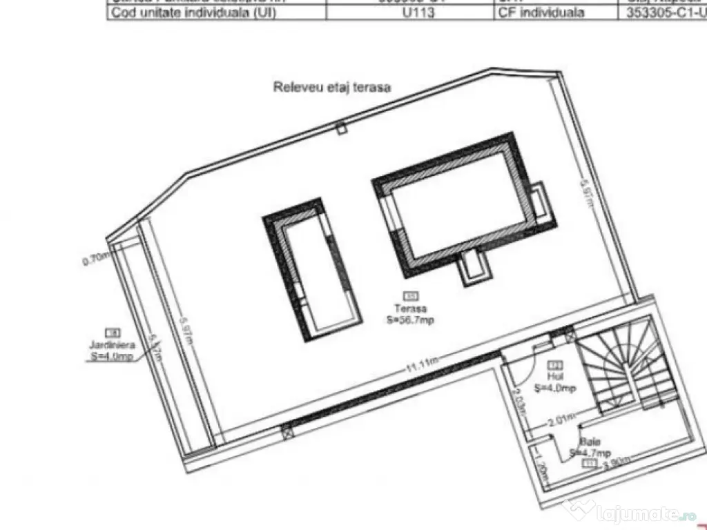 Penthouse spectaculos pe 3 niveluri, 135,8 mp, Zorilor, ansamblu nou Vă propunem spre vânzare un penthouse spectaculos, dispus pe 3 niveluri, situat într-un ansamblu rezidențial modern din cartierul Zorilor. O locuință exclusivistă, cu o suprafață totală de 221,4 mp, ideală pentru cei care caută spațiu, confort și priveliști panoramice asupra orașului. ???? Suprafață utilă interioară: 135,8 mp ???? Balcoane: 24,9 mp ???? Terasă panoramică: 56,7 mp ???? Jardinieră: 4 mp ???? Etaj: 14 + etaj retras + terasă circulabilă deasupra ???? Stadiu: Semifinisat – posibilitate de amenajare personalizată ???? Compartimentare inteligentă pe 3 niveluri: Etaj 14: • Living cu bucatarie generos si camara • Dormitor cu acces la balcon • Baie • Hol Etaj retras: • 2 dormitoare • 2 băi • balcon Etaj superior (terasă): • Terasă panoramică de 56,7 mp cu jardiniera • Spațiu de hol + baie ✅ Avantaje: • Ansamblu rezidențial nou, cu lift și finisaje moderne • Posibilitate de compartimentare și design personalizat • Priveliște panoramică asupra orașului • Ideal pentru locuință de lux sau investiție cu randament ridicat ???? Locație excelentă – Zorilor, zonă cu acces facil către centrul orașului, spitale, facultăți, parcuri și magazine. ???? Contactează-ne pentru mai multe detalii sau programarea unei vizionări! Cod ofertă / ID BLITZ: P146409 Id intern: P146409 Confort: 1 Tip imobil: Bloc de apartamente Număr Băi: 3 Nr. locuri parcare: 2