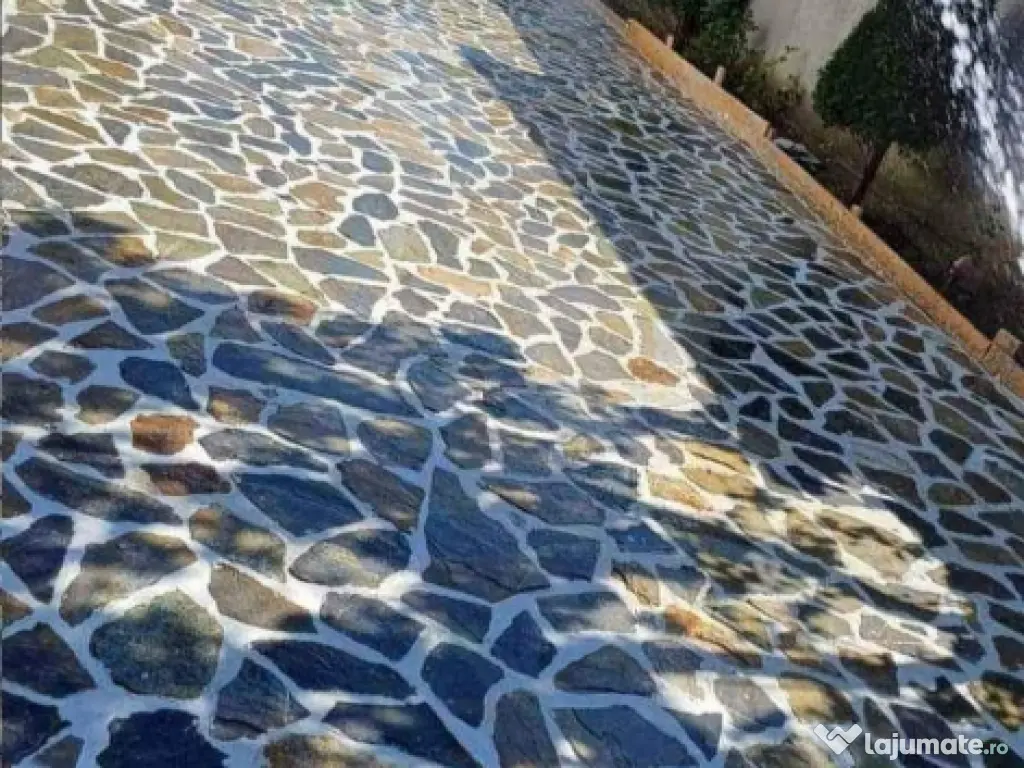 Vand și montez de la A la Z Piatra naturala de munte Ideală pentru montarea curți exterior cât și pentru interior. - Alei pietonale -Terase -Garduri -Stalpi -Trepte - Pereți -Platforme -Soclu -Trafic greu Mai executam si : -Gratare -Fântâni arteziene -Zidări -Garduri din plasa si piatra de calcar. Ma deplasez personal pentru a vedea lucrare si a stabili detaliile, fără niciun cost. Iar transportul este asigurat de către mine oriunde în tara. Lucram atât pentru persoane fizice cât și pentru firme sau primari Piatra este 100% naturala si vine într-o gama variata de nuanțe si structuri, proveniență la alegere iar grosimea variază. Pentru mai multe informați ne puteți contacta în privat sau la telf