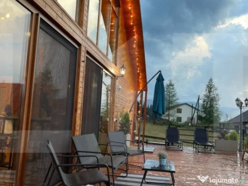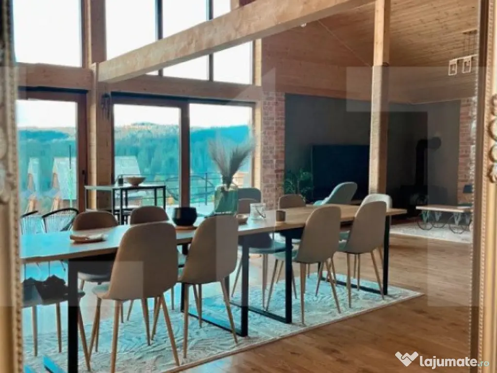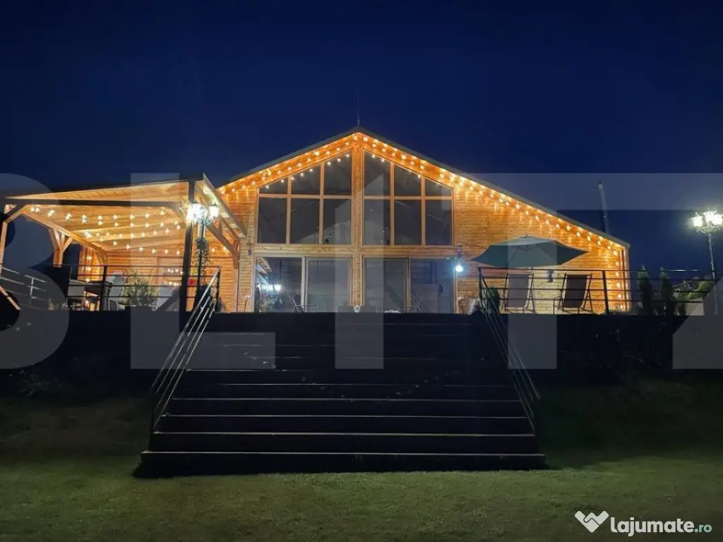 Cu mândrie și rafinament, vă propunem o oportunitate excepțională: vânzarea unei afaceri la cheie de neegalat. Casa de vacanță în stil scandinav este așezată cu eleganță chiar deasupra malului lacului Beliș, oferind o priveliște desprinsă din basme. Localizată în inima munților Apuseni, în pitorescul sat Smida, această proprietate strălucește la granița a trei județe fascinante: Cluj, Bihor și Alba. Înconjurată de păduri de molid și brad, la doar pași distanță de platoul unde se desfășoară prestigiosul festival "Smida Jazz Festival", această locație vă ademenește cu liniștea și aerul pur specifici Apusenilor. Îmbogățiți-vă timpul cu activități relaxante precum drumeții prin pădure, cules de fructe de pădure sau ciuperci, plimbări romantice cu barca pe lac și, desigur, pescuit. Infrastructura zonei se dezvoltă rapid, cu proiecte de pietruire și turnare a covorului asfaltic, conectând astfel Smida la destinații cheie precum Poiana Horea, Giurcuța, Padiș etc. Casa de vacanță este o operă de artă arhitecturală, dispunând de 5 dormitoare, fiecare cu baie proprie și design personalizat. Spațiul generos al bucătăriei, zonei de dining și living open space, cu perete vitrat impresionant de 7 metri înălțime și 5 metri lățime, creează o atmosferă deschisă și luminoasă. Bucătăria complet mobilată și utilată încântă cu cele 3 frigidere, plită electrică, cuptor electric, cuptor cu microunde, hotă, mașină de spălat vase, expresor Delonghi, prăjitor de pâine, fierbător de apă și un grill electric profesional pentru exterior. Zona de dining, cu o masă elegantă pentru 10 persoane, este însoțită de scaune cu huse lavabile. Livingul captivant este decorat cu un semineu pe lemne și un Smart TV uriaș de 1,8 metri diagonala, amplificat de accentele subtile de cărămidă, beton aparent și lemn nobil. Camera tehnică integrează o centrală termică pe peleți, controlabilă de la distanță, oferind în același timp spațiu pentru depozitare. Cu o suprafață de 75 mp, terasa rafinată dispune de o pergolă de 20 mp, masă și scaune de exterior, grill pe lemne, mobilier de terasă, șezlonguri și o umbrelă, toate iluminate cu ghirlande luminoase cu becuri de grădină cu filament. Curtea extinsă, de 3112 mp, dezvăluie două platouri în trepte în fața cabanei, acoperite de gazon englezesc, spațiu de joacă cu trambuline și căsuță tobogan, precum și o zonă cu foc pentru serile de neuitat, oferind priveliști panoramice asupra lacului și pădurii de brazi și molizi care îmbrățișează această oază de liniște. Accesul la casa de vacanță se realizează printr-un drum privat, iar apa provine dintr-o sursă proprie, o fântână cu pompă. Întreaga proprietate se predă cu toate facilitățile și dotările sale. Acest paradis al confortului și naturii așteaptă să devină povestea dumneavoastră. Acte in regula, casa in CF. Simulare bussines : Proprietatea in 2024 s-a inchiriat cu 3500 de lei-4000 de lei/week-end. La o ocupabilitate de 50 % din week-enduri, se incaseaza dublul unui chirii pentru apartament de aceeasi valoare in oras. Astfel ramndamentul devine interesant. Neluand in calcul alte ocupabilitati care cu o promovare corecta pot sa ofere proprietartii, clienti , cu o constanta care duc amortizarea si mai rapida, a investitiei. Cod ofertă / ID BLITZ: P3026 Id intern: P3026 Număr niveluri imobil: 1 Număr Băi: 6 Nr. locuri parcare: 4