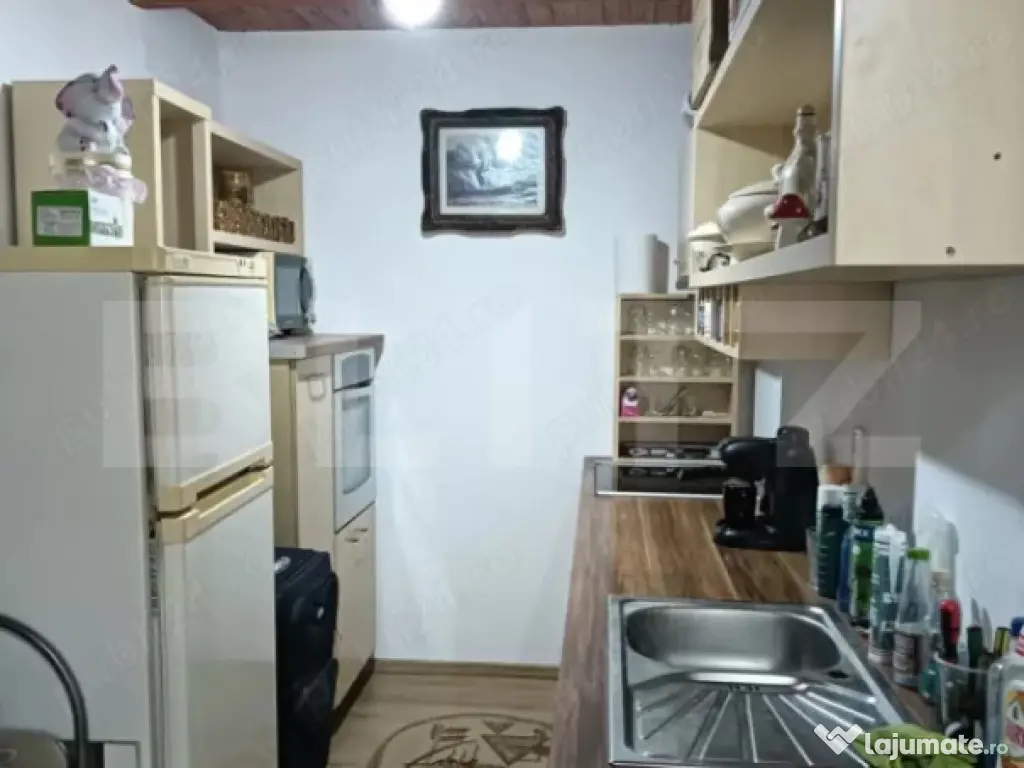 • Living open-space cu bucătărie complet mobilată și utilată