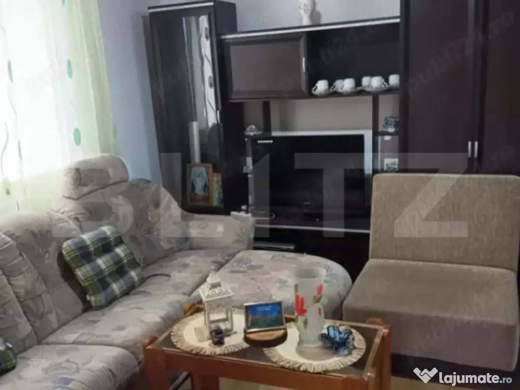 • Mobilier inclus: colțar, canapea extensibilă, dressing din lemn masiv cu oglindă, mobilier living