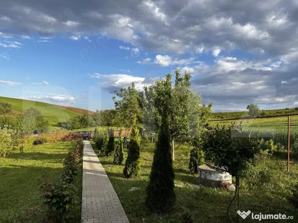• Livadă impresionantă cu peste 140 de pomi fructiferi pe rod: meri, peri, gutui, caiși, vișini, pruni, nuci, zmeură, mure etc.
