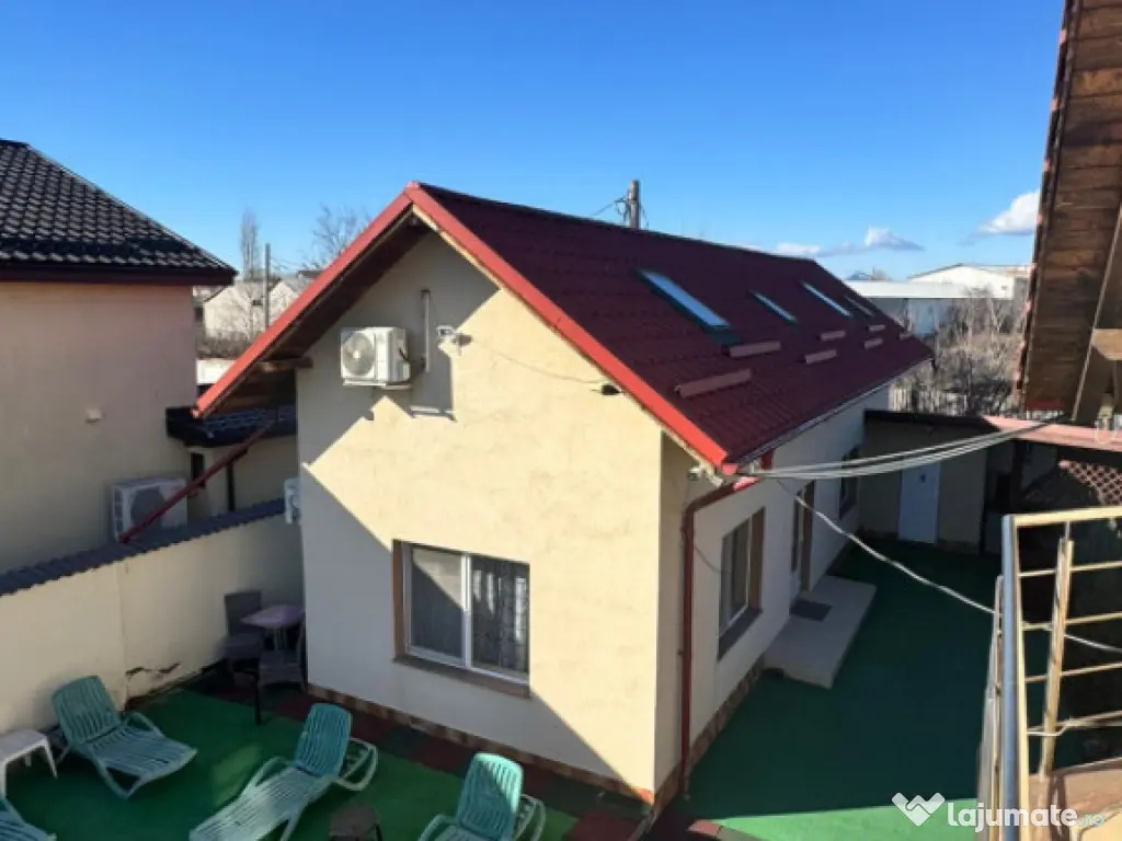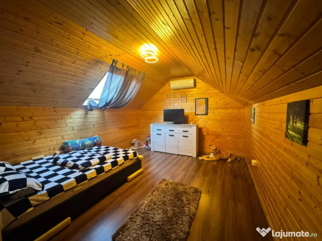 Blitz va propune o casa cu teren de 960 mp cu două case, terasă de 72 mp pentru evenimente. Descoperă o proprietate deosebită, cu spațiul generos și funcționalitate. Situată pe o stradă privată, aproape de Metro, această proprietate oferă intimitate și confort, fiind ideală atât pentru locuire permanentă, cât și pentru organizarea de evenimente private sau întâlniri cu familia și prietenii. Pe terenul de 930 mp sunt construite două imobile. Casa principală, cu o suprafață utilă de 176 mp, dispune la parter de living luminos, zonă de dining, bucătărie, cameră tehnică, baie și terasă, iar la etaj regăsim trei dormitoare spațioase, două băi și două balcoane. Dintr-unul dintre dormitoare se face accesul pe scară interioară către mansarda open space, un spațiu versatil ce poate fi amenajat ca loc de joacă, birou sau dressing. A doua construcție, în stil cabană de munte, are 113 mp utili și cuprinde două dormitoare, trei băi, bucătărie și living open space, fiind perfectă pentru oaspeți. Terasa exterioară de 72 mp, cu grup sanitar propriu, este ideală pentru evenimente în aer liber și este echipată cu cuptor pentru pâine sau pizza, grătar, afumătoare și plită de gătit pe lemne. Proprietatea beneficiază de curent electric, puț forat și stație de epurare, iar încălzirea se realizează prin centrală electrică. Casa este izolată termic, acoperită cu țiglă ceramică, iar curtea este prevăzută cu sistem de drenaj cu captare a apei și evacuare automată prin pompe, oferă spațiu suficient pentru 2-3 autoturisme. Cod ofertă / ID BLITZ: P165815 Id intern: P165815 Număr Băi: 7 Curent Apă Canalizare Sistem irigaţie Climă