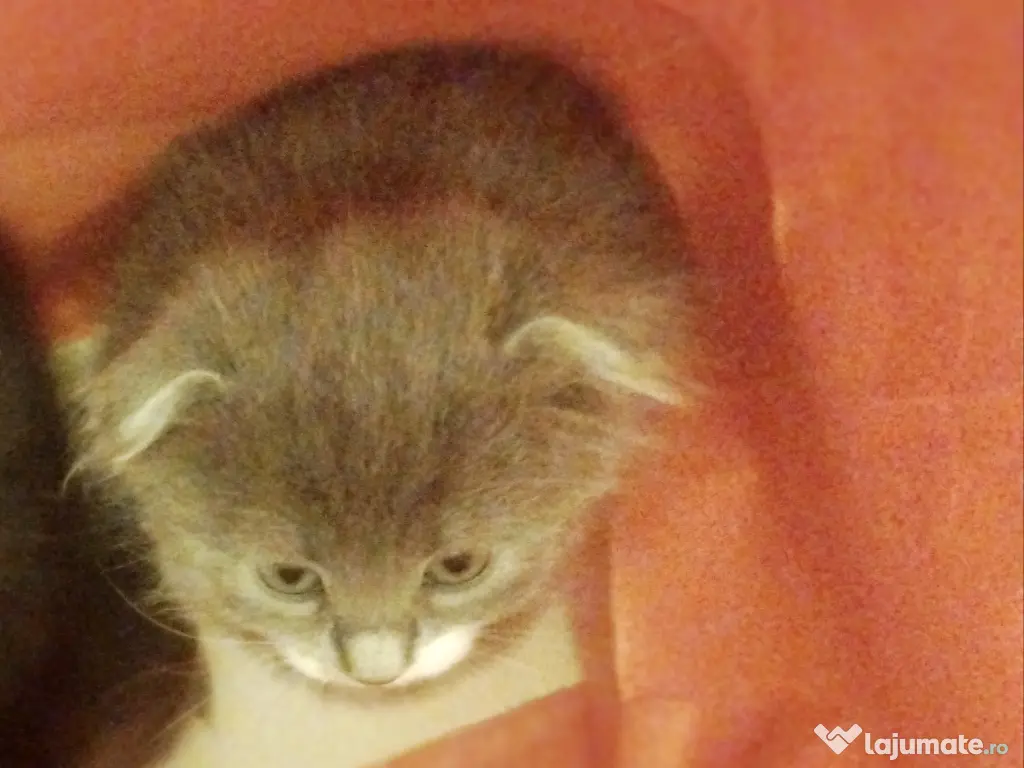 Ultimii fratiori Scottish Fold si Straight isi cauta noile casute. In varsta de 2 luni si total independenti, mananca exclusiv bobite Royal Canin Mother & Babycat, folosesc litiera de la primii pasi si sunt extrem de iubitori si empatici. Dorm lipiti de om si pupa toata ziua, dupa protocolul Casei Scottish. Vin cu schema de deparazitare completa si cu manierele la purtator. Te vor cuceri la prima vedere, pentru toata viata. PS Pretul este negociabil si variaza intre 600 si 1000 lei, in functie de exemplar. Esential este sa gasim cele mai potrivite familii pentru micuti