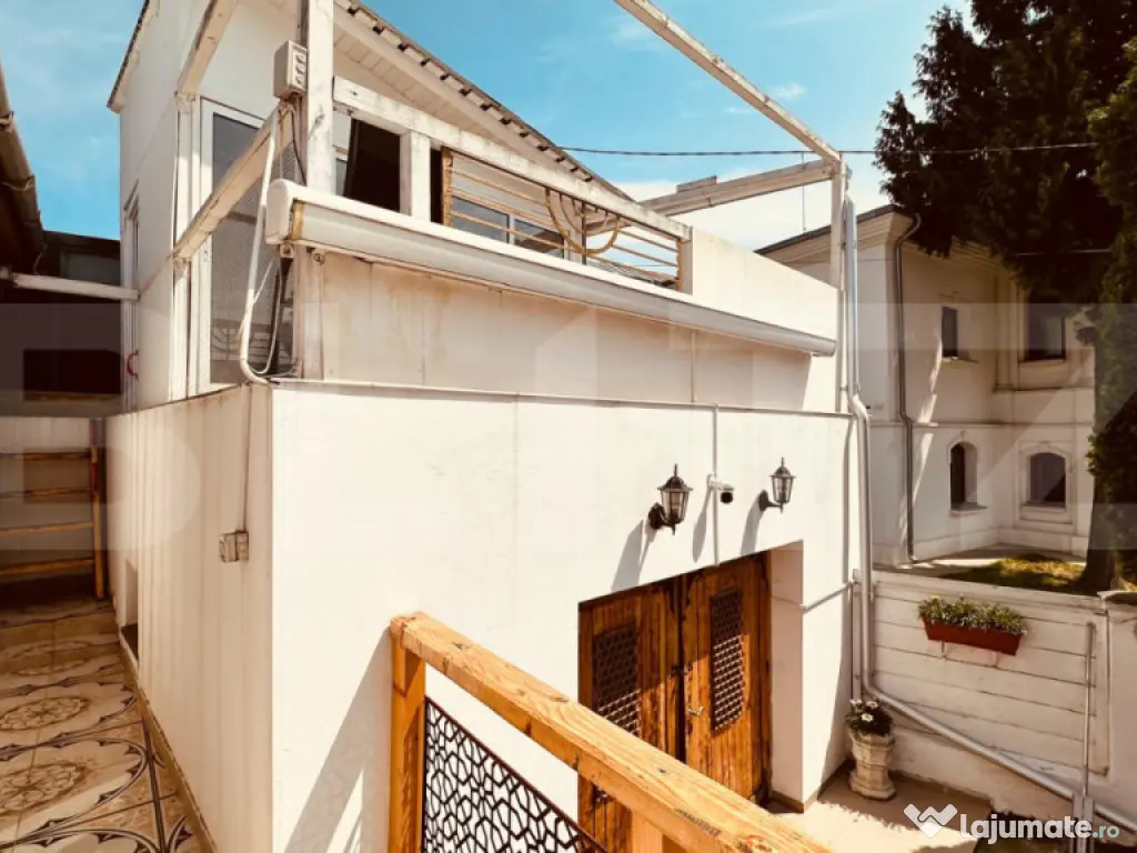 Casă individuală cu arhitectură clasică, renovată exterior, în zona Nicolae Gane – Iași Locație premium | Demisol funcțional | Mansarda pretabila pentru spatiu locativ. Teren generos | Stil arhitectural clasic Se oferă spre vânzare o proprietate deosebită situată în inima municipiului Iași, pe strada Nicolae Gane, una dintre cele mai exclusiviste și apreciate artere rezidențiale. Zona este recunoscută pentru liniște, accesibilitate excelentă și clădiri cu valoare istorică și arhitecturală. Această casă individuală beneficiază de o renovare exterioară completă, păstrând totodată elemente de stil clasic, care îi conferă eleganță și autenticitate. Caracteristici generale: Teren intravilan: 235 mp Suprafață construită la sol: 135 mp Suprafață construită desfășurată: 134,82 mp Suprafață utilă totală: 127,06 mp Demisol complet funcțional: 27,06 mp Parter: 100,13 mp Mansarda- -posibilitate amenajare si dublarea spatiului locativ Compartimentare – demisol: Sas: 4,21 mp Bucătărie: 17,57 mp Cămară: 5,28 mp Demisolul dispune de acces separat și lumină naturală, fiind ideal pentru: bucătărie de vară, spațiu tehnic, depozitare, birou sau cameră hobby. Detalii tehnice și finisaje: Structură solidă: fundație și zidărie din cărămidă, planșee din beton armat Tâmplărie PVC cu rulouri exterioare din aluminiu (siguranță + izolație termică) Fațadă renovată complet, inclusiv ornamentele clasice Poartă metalică ornamentală, acces pietonal și auto Curte betonată, cu potențial de amenajare grădină sau terasă Acoperiș tip mansardă, cu lucarne, în stare foarte bună Izolație termică exterioară – termosistem și tencuială decorativă Utilități și infrastructură: Apă curentă, canalizare, electricitate și gaze naturale – toate bransamentele active Contorizare individuală pentru toate utilitățile Stradă asfaltată, cu acces auto facil Proprietate împrejmuită complet, delimitare clară Avantaje cheie: Locație excelentă: 5-10 minute de mers pe jos până la Piața Unirii, Palas Mall, Universitatea „Al. I. Cuza” sau Colegiul Național Ideală pentru locuință familială sau activități business: birou, cabinet notarial/medical, sediu firmă, regim hotelier Posibilitate de extindere sau mansardare cu dublarea spatiului locativ, datorită structurii solide și formei acoperișului Cod ofertă / ID BLITZ: P150458 Id intern: P150458 Număr Băi: 2 Nr. locuri parcare: 1 Curent Apă Canalizare Gaz Climă