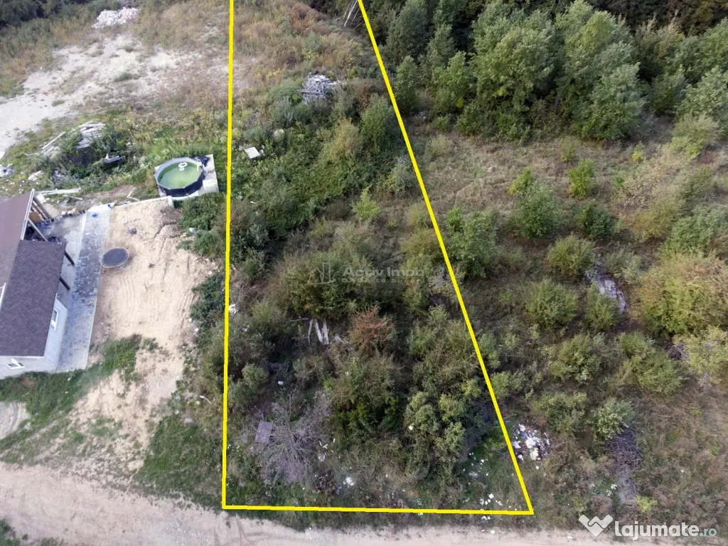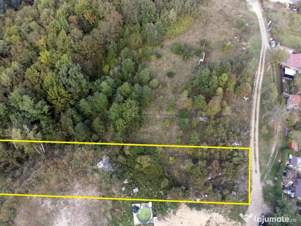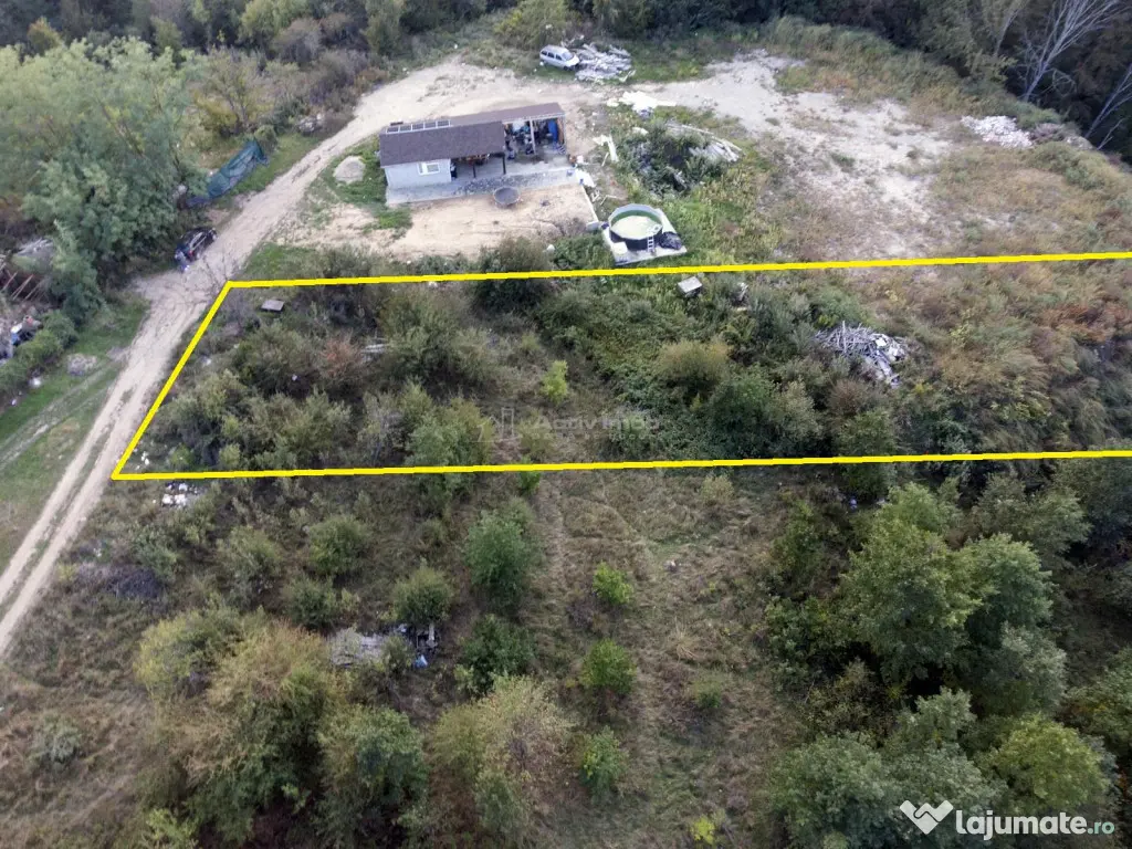 - Terenul este localizat intr-o zona bine cotata, oferind atat liniste si intimitate, cat si proximitate fata de oras. Terenul este acoperit de vegetie, dar odata curatat se preteaza atat pentru constructii si amenajari mici cat si pentru unele mai mari, suprafata fiind destul de mare pentru a acomoda mai multe constructii - cladiri, garaje, locuri de parcare, ateliere, piscina, gradina de legume sau livada;