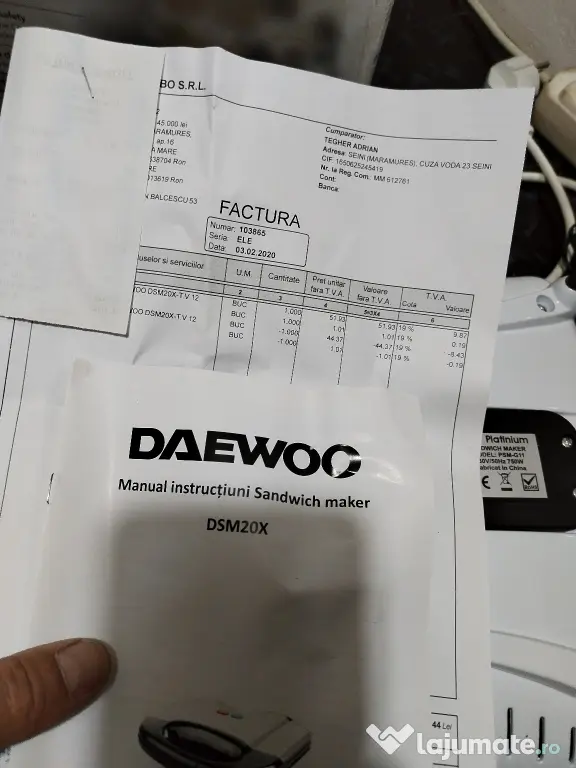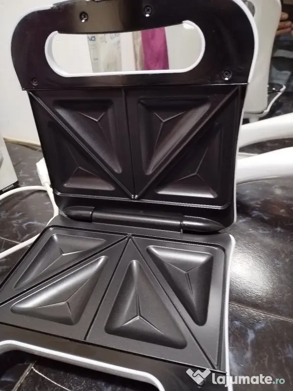 Vând un Sandwich maker de 750W nou, neutilizat. Cutia și factura sunt de Daewoo.