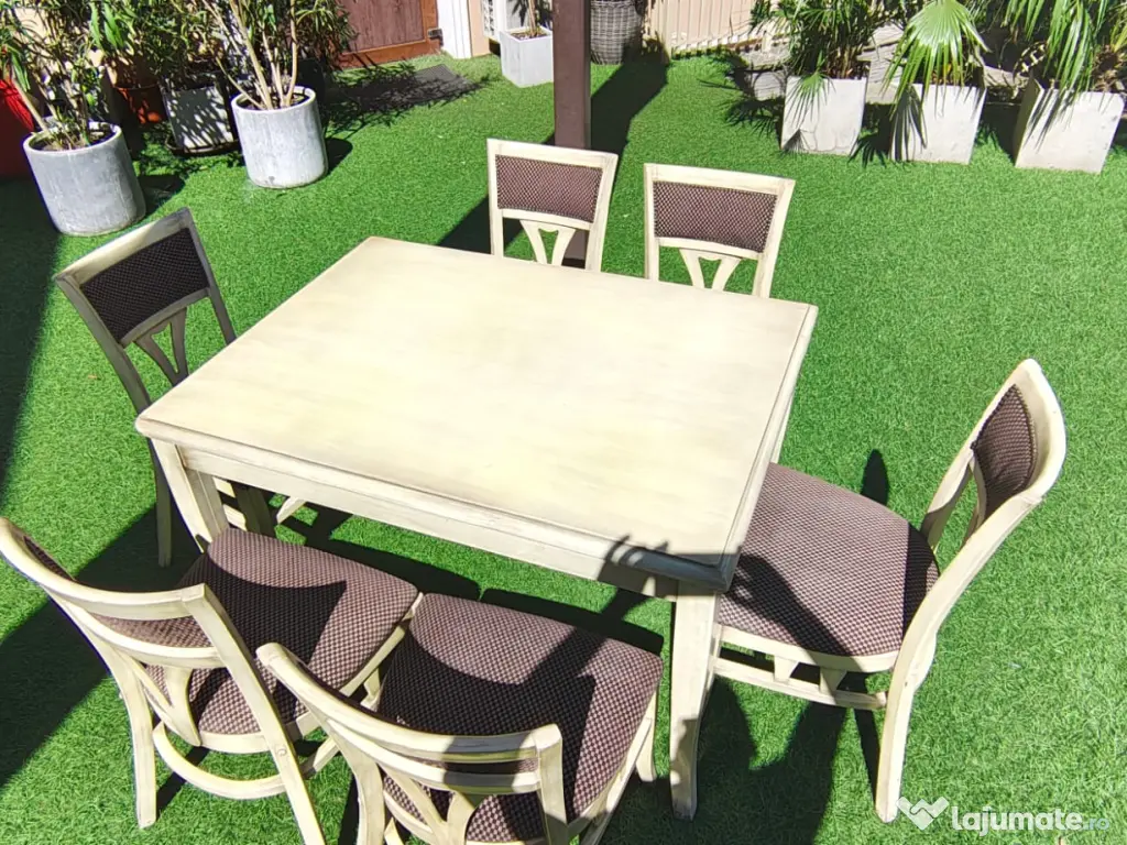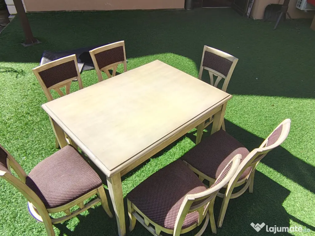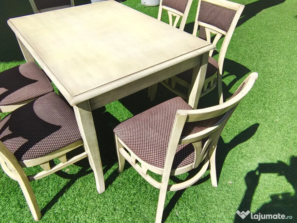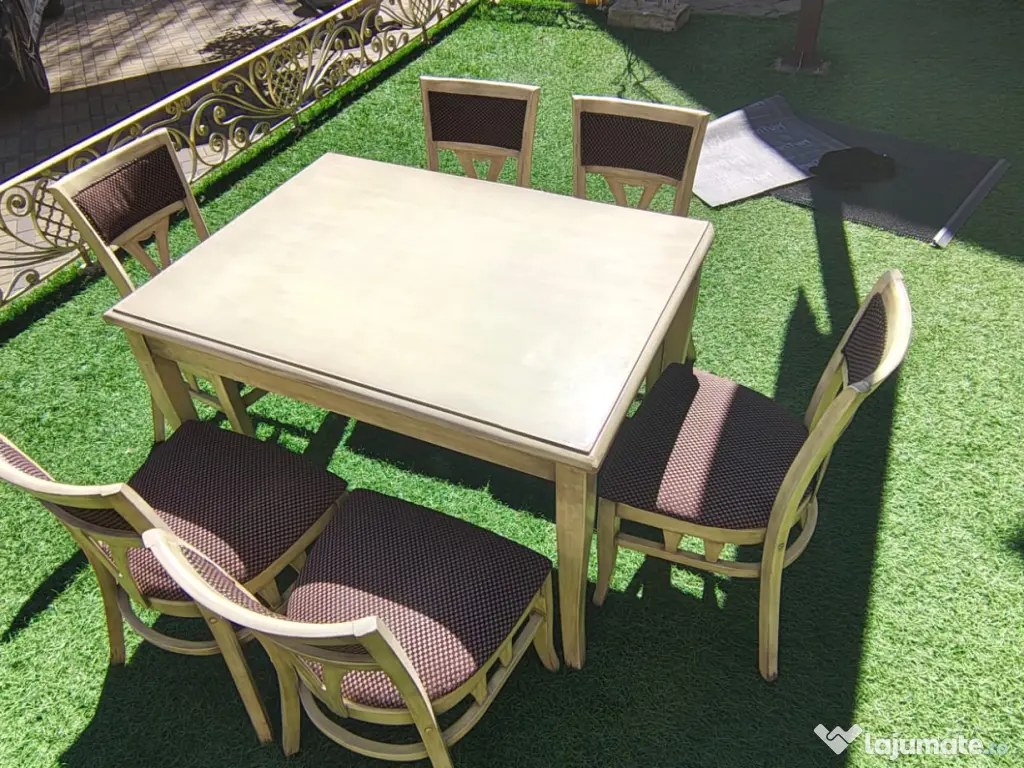 SE VINDE Scaun lemn masiv si masa patru persoane.