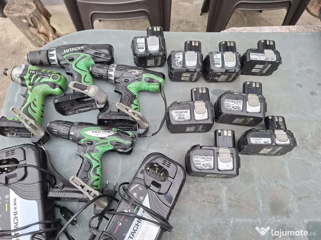 Buna ziua, vand set autofiletante Hitachi, patru filetante, doua de 14v, una de 18v cu percutie si una tot de 14v cu impact, doua încarcatoare si opt baterii, trei baterii de 14v si 3 ah, una de 14v cu 1,5 ah, trei baterii de 18v cu 3 ah si una de 18v cu 1,5 ah, toate sunt în stare foarte buna, mai am alte doua filetante de 18v, una cu impact si una cu peecutie, dar învart foarte încet, cele doua se dau gratis celui care le cumpara pe celelalte patru, bateriile tin foarte bine, cei interesati ma pot contacta la nr 07******31. Multumesc!