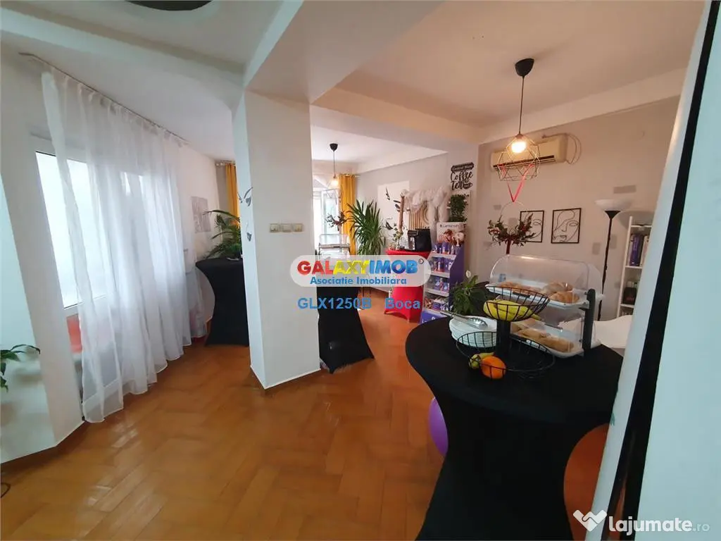 Spatiu pretabil pentru birouri, cabinete etc situat la etajul 1 al unei vile edificata in 2003. Spatiul propus spre inchiriere, ocupa intregul etaj 1, are hol, o camera mare din care se intra in bucatarie si in balconul inchis. Din hol se intra in alte trei camere si in una din bai, iar una din camere are baie proprie. Spatiul dispune de 4 aparate de aer conditionat, iar incalzirea este asigurata de centala imobilului. In prezent balconul si bucataria sunt utilizate ca saptii de depozitare.
