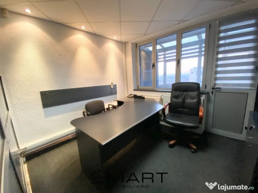 De închiriat: Spațiu birouri 80 mp, etaj 10, Sibiu – Str. Mihai Viteazul Detalii despre proprietate Suprafață utilă: 80 mp Compartimentare optimă pentru birouri Dotări: ✔ Toate utilitățile incluse ✔ Climă în toate birourile ✔ Lift până la etajul 10 ✔ Parcare disponibilă Avantaje ale locației ???? Str. Mihai Viteazul – zonă centrală, cu vizibilitate și acces facil ???? Clădire cu tradiție, găzduind sedii de radio precum Kiss FM, Magic FM ???? Locuri de parcare disponibile ???? Disponibil imediat! Pentru mai multe detalii sau pentru a programa o vizionare, contactați agentul si specificati ca ati vazut oferta cu ID-P16355. Prețul de promovare este de 400€ /negociabil în funcție de condițiile stabilite împreună cu proprietarul. Pentru mai multe detalii despre această proprietate și pentru programarea unei vizionări, vă rugăm să contactați consultantul responsabil. Smart Imobiliare vă oferă consultanță completă pe tot parcursul tranzacției, de la prima vizită și până la predarea cheilor. Id intern: P16355 Suprafaţă totală: 92 m² An finalizare construcție: 1990 Stadiu construcţie: Finalizat Comision cumpărător: 50% Tip imobil: Bloc de apartamente