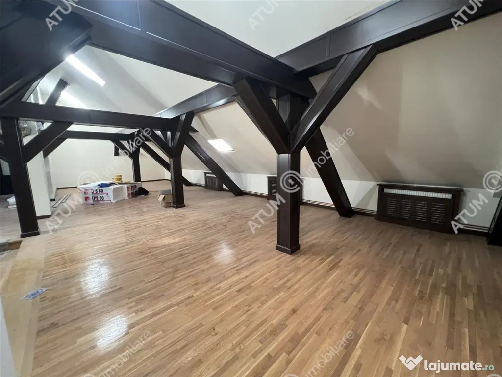 Se inchiriaza spatiu de birouri, complet renovat, cu suprafata de 248 mp construiti, 2 bai si lift, situat pe Bld. Victoriei din Sibiu. Spatiul are suprafata utila de 206 mp si este compus din 2 camere, una de 169 mp ce poate fi recompartimentata dupa necesitatile dorite, si o alta de 23.50 mp si 2 bai de 7.10 mp, respectiv 7.30 mp. Imobilul in care se afla spatiul este compus din Parter 2 Etaje Mansarda unde toate spatiile desfasoara activitate de birouri, cu acces separat la fiecare etaj. De asemenea si contorizarea utilitatilor se face separat, in functie de etaj. Renovarea facuta in 2025 s-a axat pe modernizarea spatiului, pe tansformarea unei mansarde intr-un spatiu de birouri modern si dotat ce poate raspunde oricarei necesitati in desfasurarea activitatilor de birou. Printre modificarile aduse spatiului mentionam: captusirea podului cu vata minerala pentru termoizolare si confort si pe timpul verii cat si al iernii, instalarea unor geamuri Velux ce ofera lumina naturala, instalatii sanitare, electrice si de canalizare, utilarea celor 2 bai, instalarea unui lift pentru a facilita accesul la etajul superior, montarea de prize si intrerupatoare, dar si montarea unor usi, a parchetului si a tamplariei de lemn masiv. De asemenea, stalpii care ajuta la recompartimentarea biroului central de 169 mp au fost placati cu lemn masiv si redau un aspect de inalta calitate intregului spatiu. Zona in care este situat imobilul, se afla intr-un centru vital al orasului, cu acces usor la institutii cheie: Primaria Sibiu - corpul central si cel secundar, Directia Fiscala Locala, majoritatea birourilor notariale, de avocatura sau alte institutii si birouri conexe dar si spre cel mai mare parc din oras. Valoarea de inchiriere de este 1500 euro TVA/luna negociabil o luna garantie. ID intern: 3058 Suprafaţă totală: 248 m² An finalizare construcție: 1950 Stadiu construcţie: Finalizat Clasă birouri: B Înălţime spaţiu: 3 m Număr încăperi: 2 Număr Grupuri Sanitare: 2 Tip imobil: Bloc de apartamente