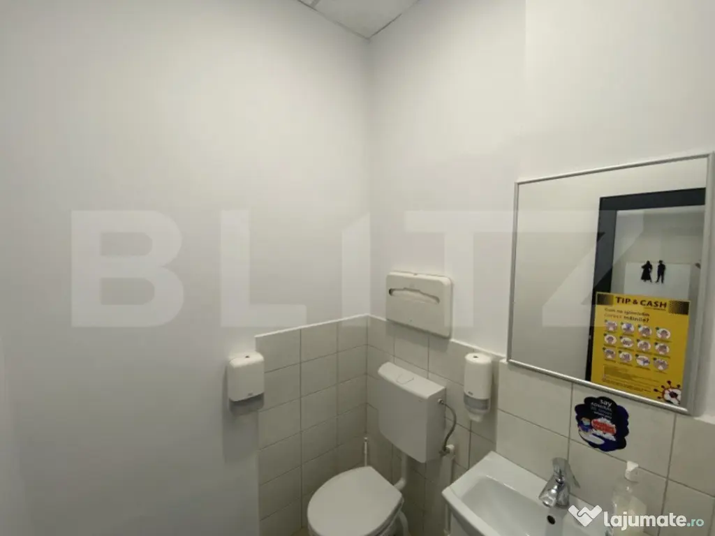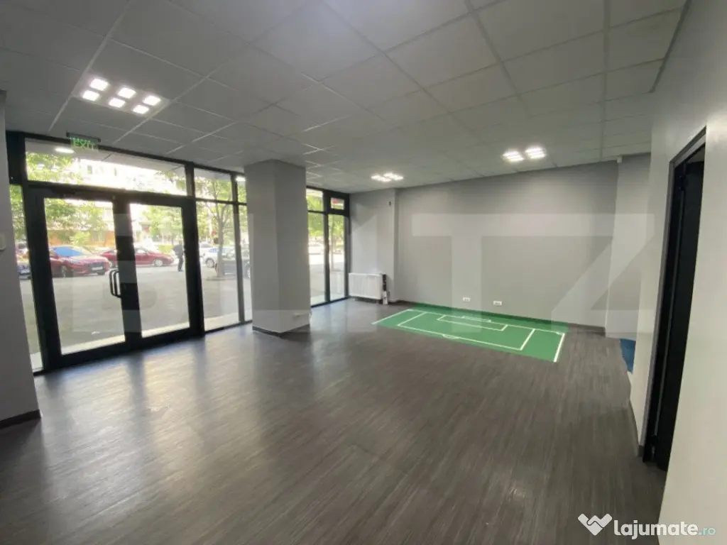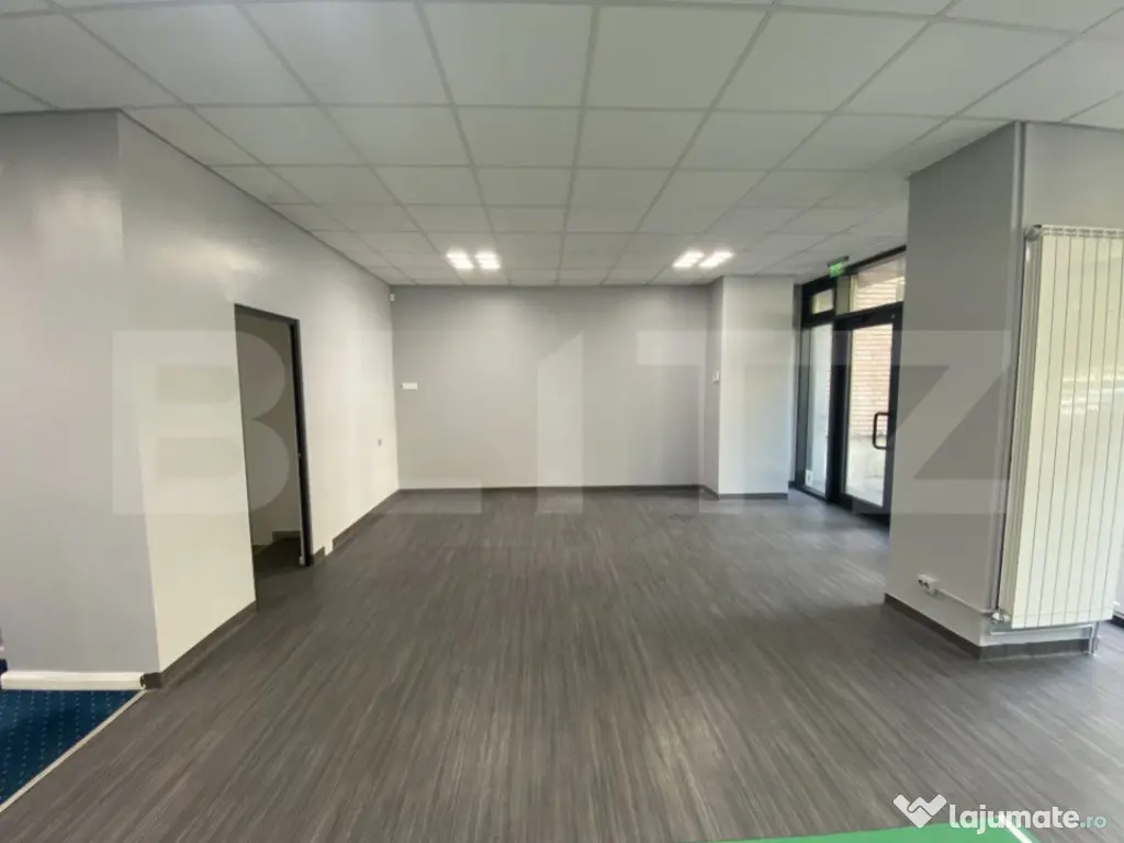 Blitz va propune spre inchiriere un spatiu comercial situat intr-o zona cu trafic intens atat pietonal cat si auto, in zona Parculet Rovine. Acesta are o suprafata de 72 mp utili, iar compartimentarea este realizata astfel: spațiu deschis, spațiu destinat birou, spatiu tehnic, grup sanitar. Spatiul dispune si de alte facilitati precum vitrina, centrala termica, aer conditionat, instalație electrică de mare putere, utilitati separate. Este ideal pentru orice activitate comerciala de tip showroom, sediu banca, sala de jocuri de noroc, magazin, dar și alte activitati comerciale sau de birou. Cod ofertă / ID BLITZ: P127432 Id intern: P127432 Stadiu construcţie: Finalizat Tip imobil: Bloc de apartamente