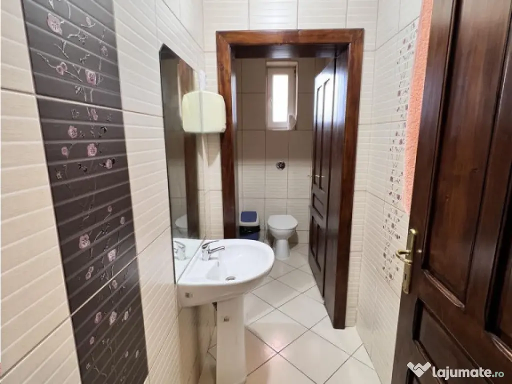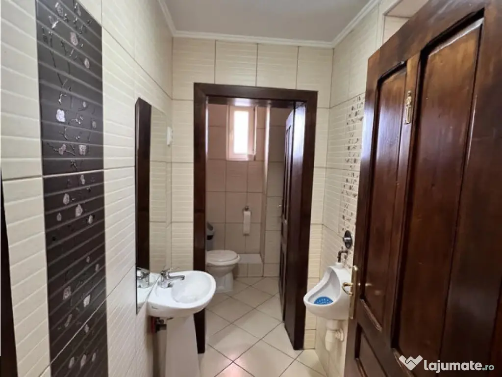 Spatiu de inchiriat open-space, amplasat la parterul inalt al unui imobil, cu acces din strada, situat langa Promenada Mall, in zona Garii din Sibiu. Spatiul are suprafata utila de 114 mp utili, compusa din hol de acces de 12.5 mp, camera de 93 mp si 2 grupuri sanitare utilate de 4 mp fiecare. Inaltimea imobilul in care este situat este construit in anul 2005 din structura de beton si zidarie din caramida, izolat exterior de 10 cm si zugravit cu decorativa siliconata. Dotarile de care mai beneficiaza sunt tamplaria PVC cu geamuri termopane, usi din PVC, centrala termica de imobil, calorifere, gresie, faianta. Spatiul este pretabil pentru domenii comerciale, avand un mare atuu inaltimea sa de 3 metri, accesul direct din strada, vad pietonal si auto foarte mare si deschidere stradala de 3 metri. Valoarea de inchiriere a spatiului este de 2800 euro 2 garantii la incheierea contractului. ID Intern: 2573 Separat daca se doreste se mai poate inchiria camera alaturata in suprafata utila de 31 mp. Suprafaţă totală: 137 m² An finalizare construcție: 2005 Vitrină: 10 m Stadiu construcţie: Finalizat Înălţime spaţiu: 3 m Număr încăperi: 2 Număr Grupuri Sanitare: 2 Tip imobil: Casă/Vilă