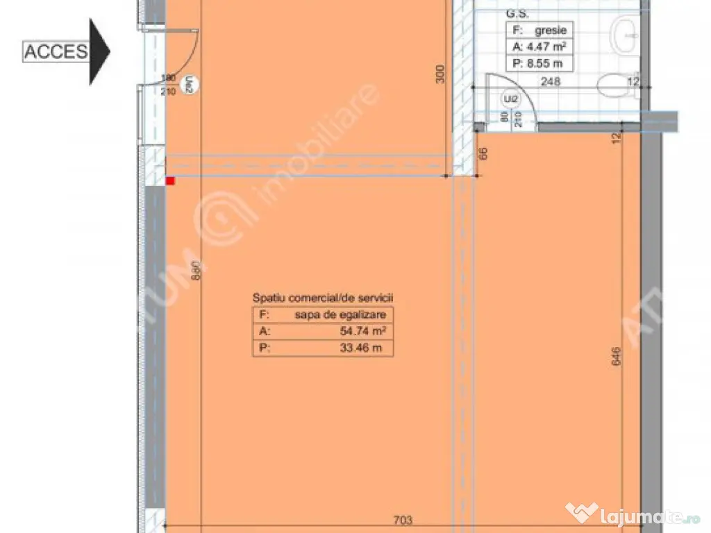 De vanzare spatiu comercial in suprafata totala de 71 mp tip open space, orientat spre Sud, pozitionat la parterul unui imobil constructie noua cu regimul de inaltime Parter 3 Etaje Pod care face parte dintr-un complex rezidential de 6 imobile, aflat in zona Pictor Brana din Selimbar. Spatiul are 59.21 mp utili si este compus dintr-o camera open space de 54.74 mp si un grup sanitar de 4.47 mp, iar inaltimea spatiului este de 3 m. Compartimentarea spatiului este open space ceea ce va ofera optiunea de a configura si amenaja spatiul in functie de tipul de afacere pe care doriti sa-l desfasurati. Acesta este pretabil pentru diferite activitati, cum ar fi: magazin alimentar, cabinet stomatologic, spatiu birouri, sediu de firma, salon infrumusetare, reprezentanta sau alte activitati cu caracter comercial. In pretul de achizitie sunt incluse si 2 locuri de parcare amenajate si delimitate situat in fata spatiului. Spatiul este intabulat si finisat la stadiul de gri care cuprinde urmatoarele finisaje: - Usa de acces securizata din PVC marca Rehau; - Pereti tencuiti ( tencuieli pe baza de var-ciment marca Adeplast ) si doua maini de glet marca Baumit ; - Pardoseli amenajate cu sapa autonivelanta semiuscata elicopterizata pregatite pentru parchet-gresie; - Tamplarie PVC marca Rehau culoare alb interior/gri antracid exterior cu 5 camere si 3 foi de sticla ( lowe-float-lowe solar ), feronerie Maco Multimatic si glafuri interior-exterior; - Incalzire prin pardoseala ( sistem Innoflow cu distribuitor Inoflou, placa termoizolatoare innotack si banda perimetrala ), centrala termica proprie in condensatie marca Bosh si detector gaz. - Sisteme elecrice din cupru trase prin copex cu tablou general si sigurante pentru consumatorii de putere marca Schneider. - Curent trifazic; - Instalatii pentru curentii slabi Internet, Telefon, TV. - Racorduri apa-canal; - Racord gaz metan; - Instalatii pentru gaz, curent electric si apa, contorizare individuala si contoare montate. Spatile comune exterioare respectiv curtea complexului dispune de spatii verzi amenajate cu gazon, arbusti si plante decorative, iar inchiderea perimetrala va fi cu gard viu (verde) .Locurile de parcare sunt supraterane, sunt delimitate si pavate cu dale din beton. Aleile pietonale sunt la randul lor pavate cu dale din beton si delimitate de spatii verzi. Valoarea de achizitie a acestuia este de 130.000 euro TVA negociabil. ID intern 1923 Suprafaţă totală: 71 m² An finalizare construcție: 2022 Vitrină: 10 m Stadiu construcţie: Finalizat Înălţime spaţiu: 3 m Număr încăperi: 1 Număr Grupuri Sanitare: 1 Posibilitate parcare: Da Nr. locuri parcare: 2 Tip imobil: Centru comercial