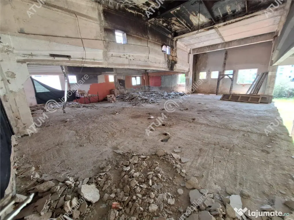 Va oferim spre vanzare o cladire in suprafata construita de 600 mp amplasata pe un teren de 1159 mp, pretabila pentru diferite activitati comerciale, situata in zona Strand din Sibiu. Suprafata utila de care beneficiaza este de 630 mp, distribuita pe 2 niveluri, la parter sunt 500 mp, iar la etaj 130 mp. Cladirea este construita pe structura din beton armat, compartimentarea la interior este open-space, oferind posibilitatea de recompartimentare dupa nevoi. Proprietatea se preteaza pentru o gama variata de utilizari, centru medical, clinica privata, showroom, birouri, gradinita privata, depozitare, etc. Imobilul beneficiaza de curte libera de aproximativ 600 mp, oferind posibilitate de extindere, acoperind intreaga amprenta la sol. Situata intr-una dintre cele mai bune zone ale orasului Sibiu, aceasta fosta centrala termica ofera un potential excelent pentru investitori, dezvoltatori sau antreprenori care isi doresc sa transforme un spatiu industrial robust intr-o destinatie moderna. Valoarea de achizitie a imobilului este de 570.000 euro. ID Intern: 2720. Suprafaţă totală: 600 m² An finalizare construcție: 1988 Vitrină: 10 m Stadiu construcţie: Finalizat Înălţime spaţiu: 3 m Număr încăperi: 1 Număr Grupuri Sanitare: 1 Posibilitate parcare: Da Nr. locuri parcare: 5-10 Tip imobil: Centru comercial