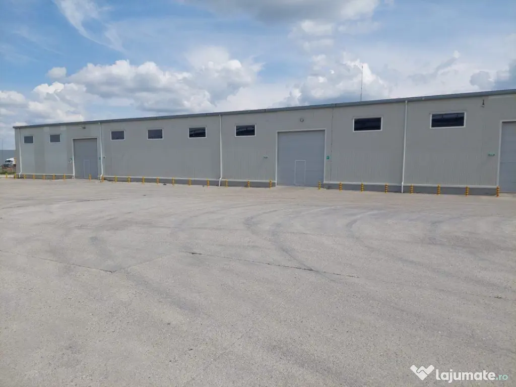 Hala 1 - finalizata in anul 2017 : in suprafata totala de 1.300 mp. cu inaltimea la coama de 8 m este formata din: parter: hala depozitare si birouri, avand 4 usi sectionale cu deschidere manuala iar la etaj birouri in suprafata de 200 mp .