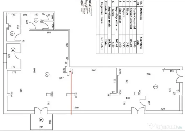 spatiu comercial cu o suprafață de 160,4mp utili + terasa de 5,5mp + 3 locuri de parcare dispuse in fata spatiului(aceasta fiind si una din cele trei zone de acces - a se vedea releveul atasat).