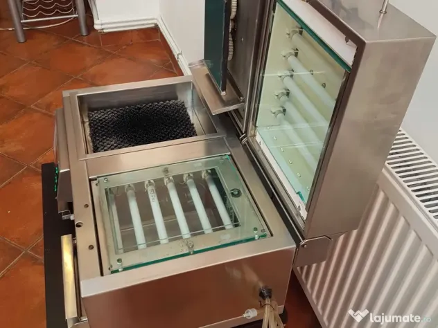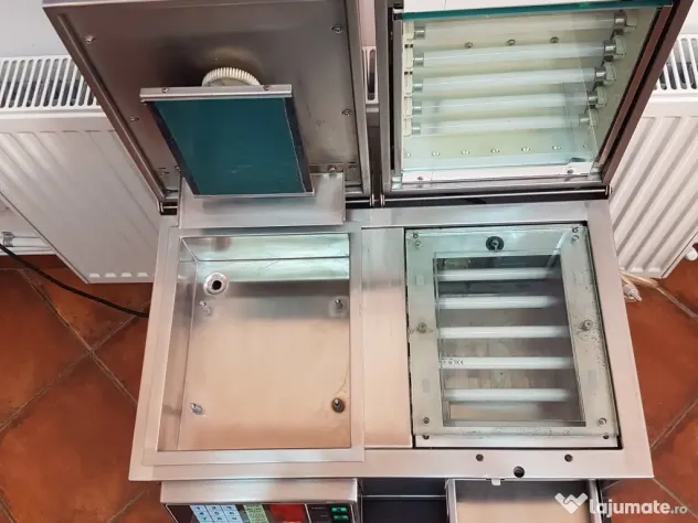Panoul de comanda numeric cu display, este ușor de folosit și asigură setarea la secundă a timpilor stabiliți. În timpul aplicării de polimer se pot ivi bule de aer. Pentru eliminarea lor, mașina este prevăzută cu un compresor care transmite un jet de aer sub presiune pentru a sparge aceste bule, prin simpla apăsare a unui întrerupător și direcționarea unui furtun prin care circul aerul. După expunerea amprentei la UV, mașina are o cuvă de spălare și îndepărtare a materialului de polimer care nu este necesar. Pentru a obține o amprentă de calitate, mașina este prevăzută cu un sertar postexpunere pentru a se obține o amprentă mai dură. După operația de întărire a amprentei, mașina are un sertar cu ventilație caldă pentru uscare.