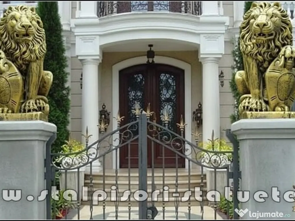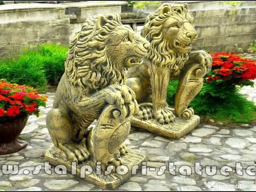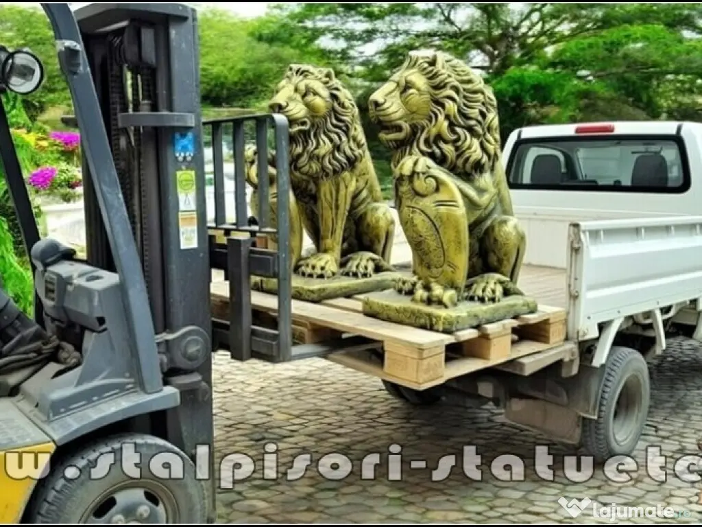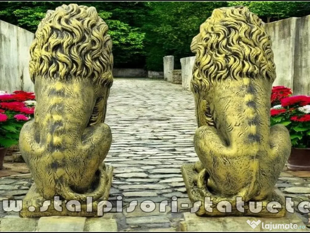 – DETALii TEHNiCE Și iNFORMATiVE PRODUS: – LiVRARE GRATUiTĂ ORiUNDE ÎN ȚARĂ Preţ: 2.900 lei (set 2 bucăţi, privire stânga-dreapta.) Înălțime: 85 cm. Diametru bază: 35 x 51 cm. Greutate: 290 kg ! (set 2 bucăți.) Material: Beton aditivat, ciment 52,5 R, agregate concasate.