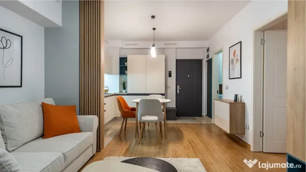 Impartirea studio-ului este ideala. Living-ul si bucataria iti ofera spatiul perfect pentru dimineti linistite sau seri cu prietenii si cei dragi. Daca vrei poti muta distractia si pe terasa care se intinde pe o suprafata de 10 metri patrati. Pentru odihna, reincarcare si relaxare am rezervat un spatiu de aproximativ 12 mp, dormitorul tau cu deschidere spre terasa.
