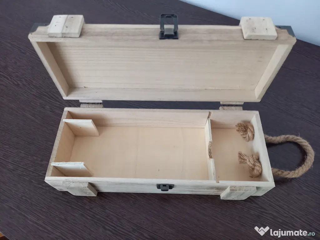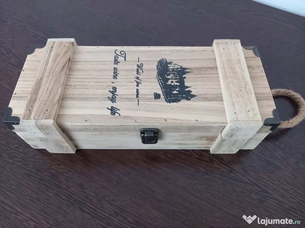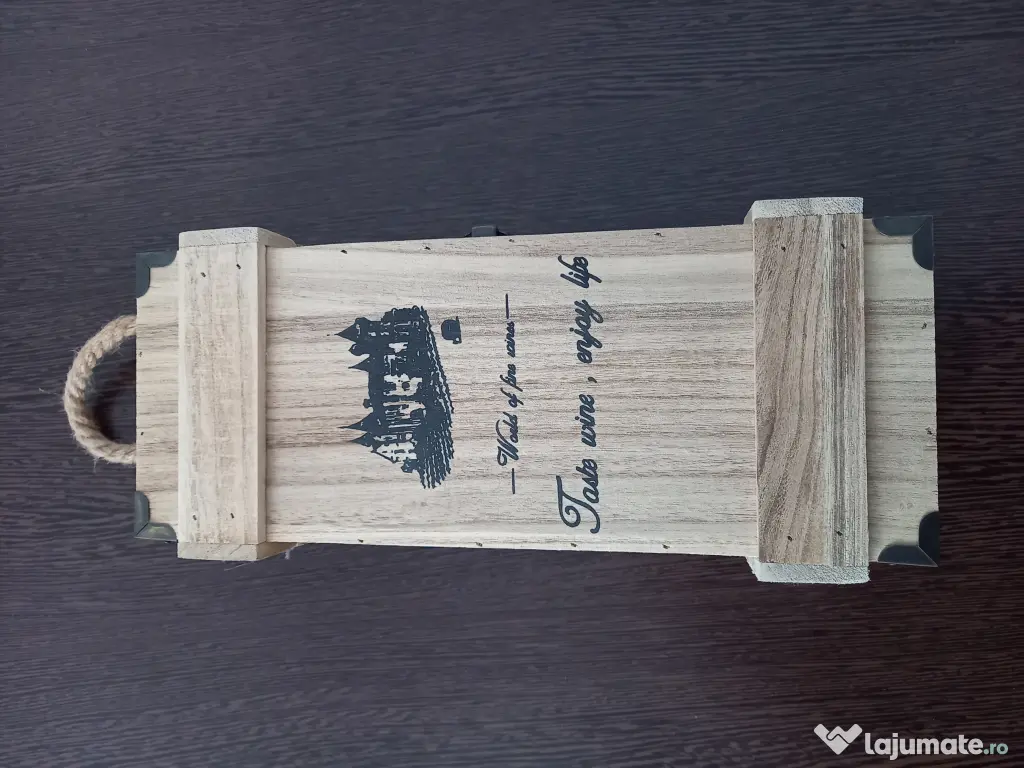 Cutie lemn/suport sticla de vin sau rom,ideal pentru cadou unei persoane îndrăgite