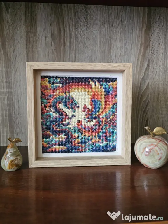 Tablouri realizate cu diamante 5D si inramate cu rame din lemd de diferite dimensiuni si culori ideale pentru a aduce o pata de culoare in casele dvs sau ale apropiatilor dvs.