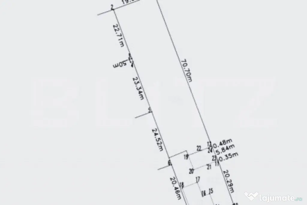 Proprietatea are o suprafață de aproximativ 1.850 mp și beneficiază de două fronturi stradale (aprox. 19 m), dintre care unul la asfalt, aspect ce permite o parcelare eficientă și dezvoltarea mai multor unități locative, în regim de înălțime P+E/M.