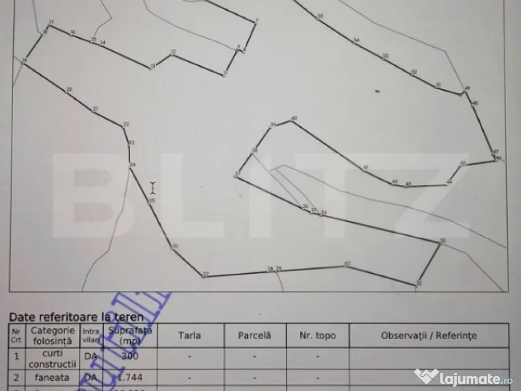 ???? BLITZ oferă spre vânzare teren cu suprafață totală de 22.267 mp, compus din 2.044 mp intravilan și 20.223 mp extravilan, situat în localitatea Trâncești, comuna Scărișoara. Amplasat la altitudine, proprietatea beneficiază de o priveliște panoramică spectaculoasă asupra zonei montane, fiind ideală pentru dezvoltare turistică, construcții rezidențiale sau investiție. ???? Pe teren se află o casă din lemn, cu suprafață construită la sol de 49 mp, compusă din o cameră, acoperită cu țiglă – perfectă pentru utilizare temporară sau ca punct de plecare pentru dezvoltare. ✨ Oportunitate excelentă într-o zonă montană deosebită! ???? Caracteristici principale: ???? Suprafață totală: 22.267 mp ???? Teren intravilan: 2.044 mp – ideal pentru construcții (cabane, case de vacanță, pensiuni) ???? Teren extravilan: 20.223 mp ???? Deschidere la drum: aprox. 90 ml ????️ Acces rutier: drum parțial asfaltat + drum de pădure ⚡ Curent electric disponibil la limita proprietății ???? Pânze freatice multiple (necesită foraj pentru captare) ???? Avantaje: ???? Zonă liniștită și retrasă ????️ Priveliști montane deosebite ???? Potențial ridicat de dezvoltare ???? Ideal pentru cei care își doresc o proprietate într-un cadru natural autentic, perfectă pentru relaxare, turism sau investiție. ???? Pentru mai multe detalii sau programarea unei vizionări, nu ezitați să mă contactați! Cod ofertă / ID BLITZ: P168713 Id intern: P168713