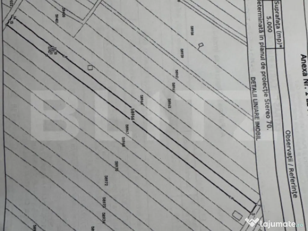 Bltz vă propune spre vânzare, în exclusivitate, un teren extravilan cu o suprafață generoasă de 5.000 mp, ideal pentru investiții, dezvoltări ulterioare sau diverse activități agricole/industriale. Proprietatea beneficiază de o deschidere de 13 m și dispune de utilități esențiale la limita terenului: -Apă -Canalizare -Curent electric Accesul la teren este facil, iar zona oferă perspectivă de dezvoltare, fiind potrivită atât pentru proiecte în curs, cât și pentru investiții pe termen lung. Documentația este în regulă, iar vânzarea se realizează exclusiv prin reprezentare, ceea ce asigură transparență și siguranță pe tot parcursul tranzacției. Cod ofertă / ID BLITZ: P157182 Id intern: P157182