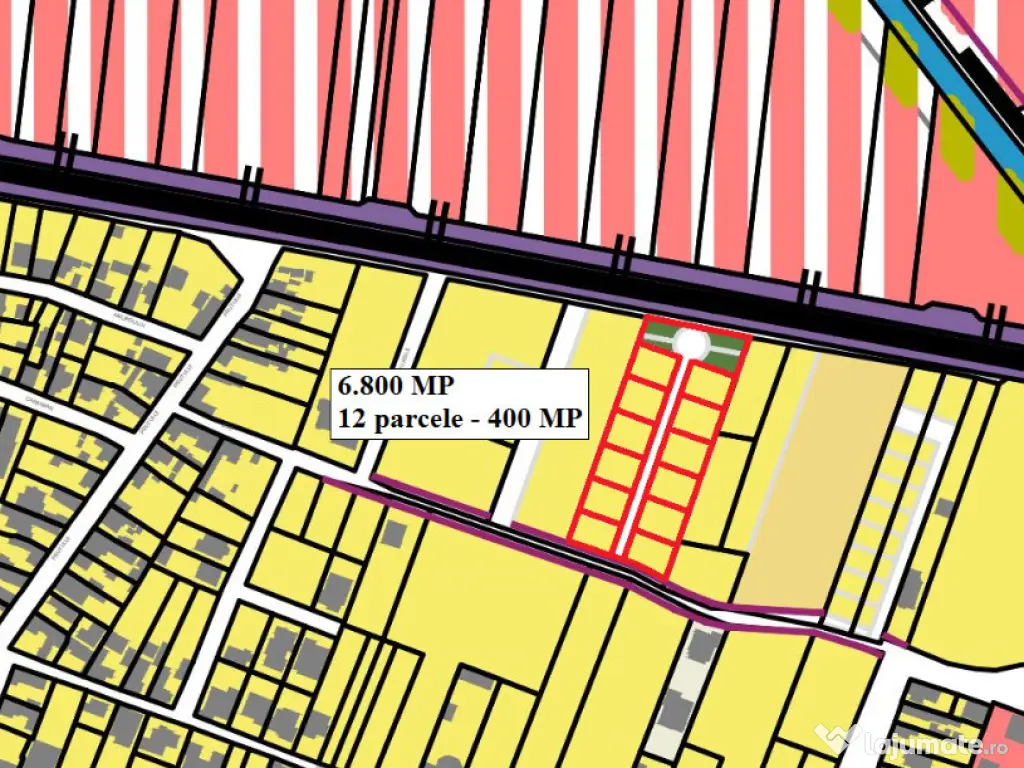 Vand teren zona Micalaca-Zoe, teren intravilan, in suprafata de 6.800 MP, cu propunere din PUG-ul nou de parcelare in 12 loturi de 400 mp, drum acces, zona de intoarcere si zona verde, POT 35%, CUT 0.9, h. max 12 M, spatiu verde 35% / parcela, utilitatile sunt in zona. Pret : 100 euro / MP ID : RH-41013-property
