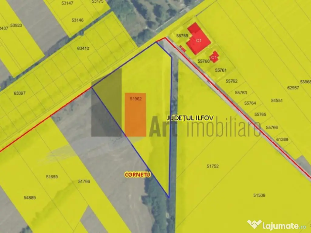 Va propunem spre achizitie un teren cu tripla deschidere după cum urmează 105ml la șoseaua Ordoreanu, 28 ml la Sos Aeroportului si 188 ml la drumul comunal 127 Cornetu La acest moment terenul figureaza Extravilan agricol dat poate fi trecut in intravilan construibil Pretabil cartier vile, hale industriale depozite etc. Toate utilitatile la intersectie la teren