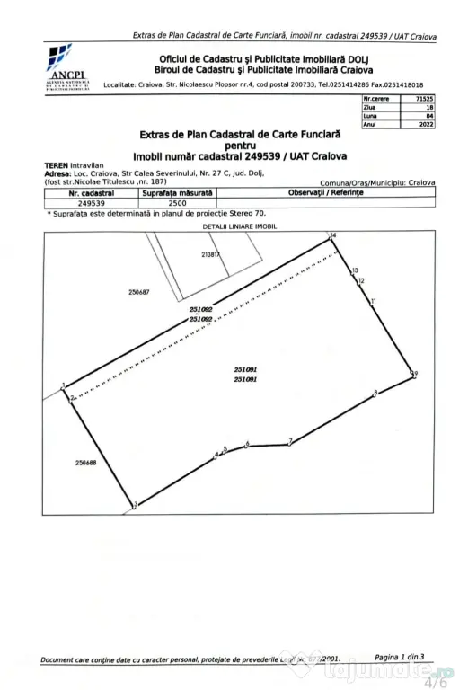 Teren 2500mp in CRAIOVA la bulevard cu deschidere de 38mp, dubla intrare din Calea Severinului si din lateral.