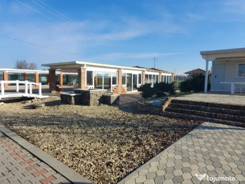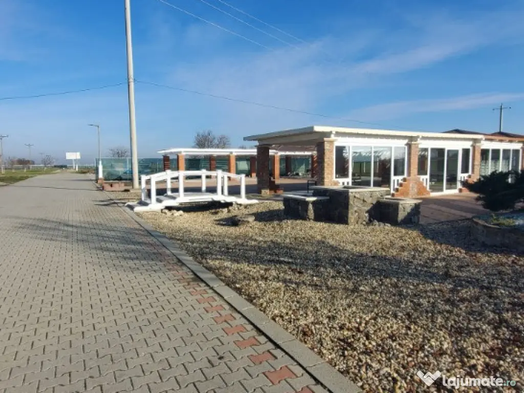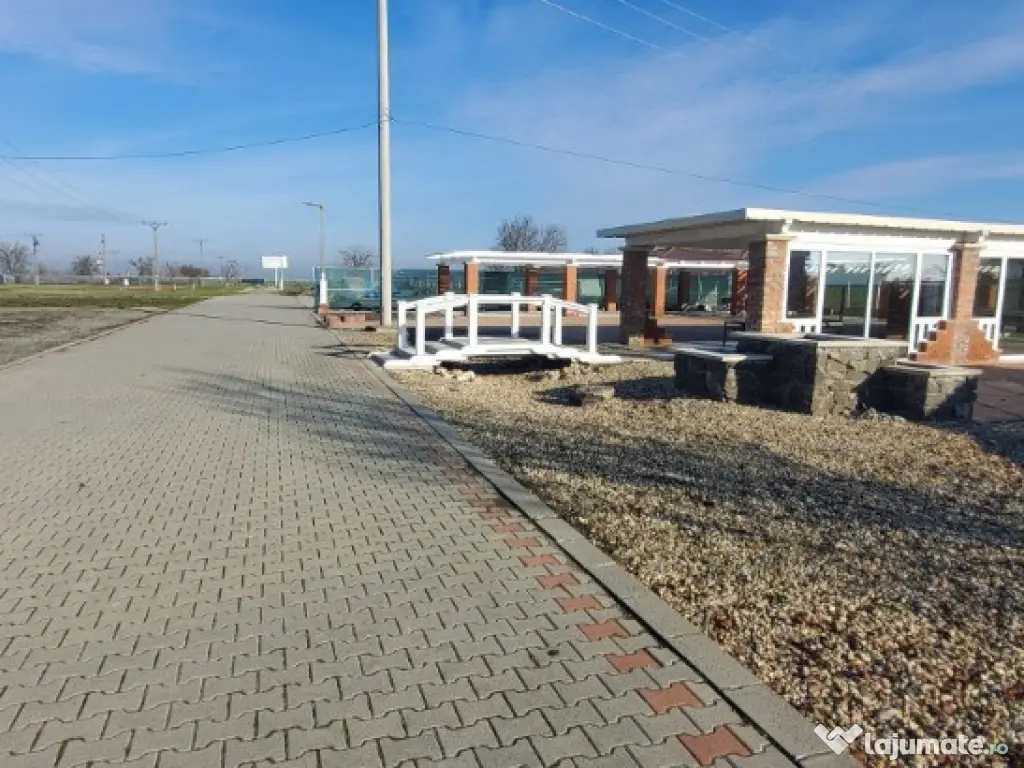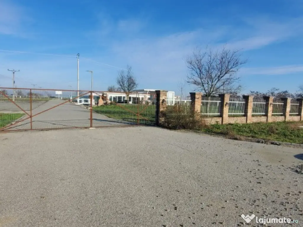 Vand teren cu constructii. Proprietatea în suprafata de 41.000 mp cu un fs de 390 ml, la DN Arad-Oradea situat în vecinătatea Domeniului Lupas. Are acces din DN 79 Arad-Oradea, branșament la apa de la rețea cât si propriile fântâni, curent si propria canalizare. În prezent este o zona administrativa tip container cu grup sanitar funcțională, o magazie, o terasa în suprafata de 560 mp care este în proporție de 90%finalizata. Grupuri sanitare și duș finalizate,zona parcare finalizata, împrejmuirea este gata pe o suprafață de 2.5 Ha unde este subtraversata toată linia de curent, inclusiv iluminatul stradal care este automatizat.Proprietatea are o suprafață de peste 6.000 mp pavaj +platforme betonate aprox 1.500 mp+ drumuri interioare asfaltate și pavate. Locația are autorizație de construcții si proiect pt construirea unei săli de evenimente în suprafata de 860 mp situată lângă terasa existenta și construirea unui alt grup sanitar. Pret : 29 euro/mp. ID : RH-35752-property