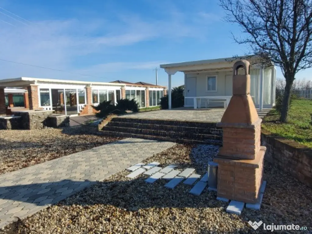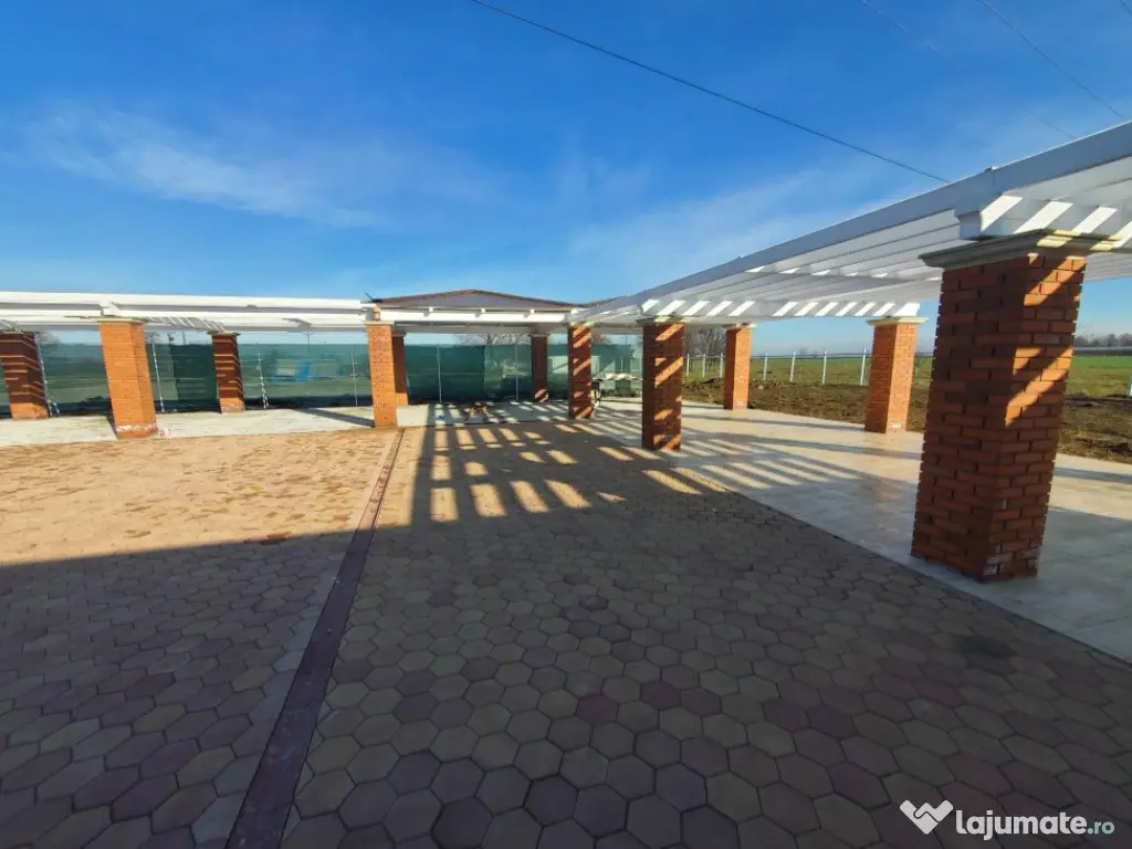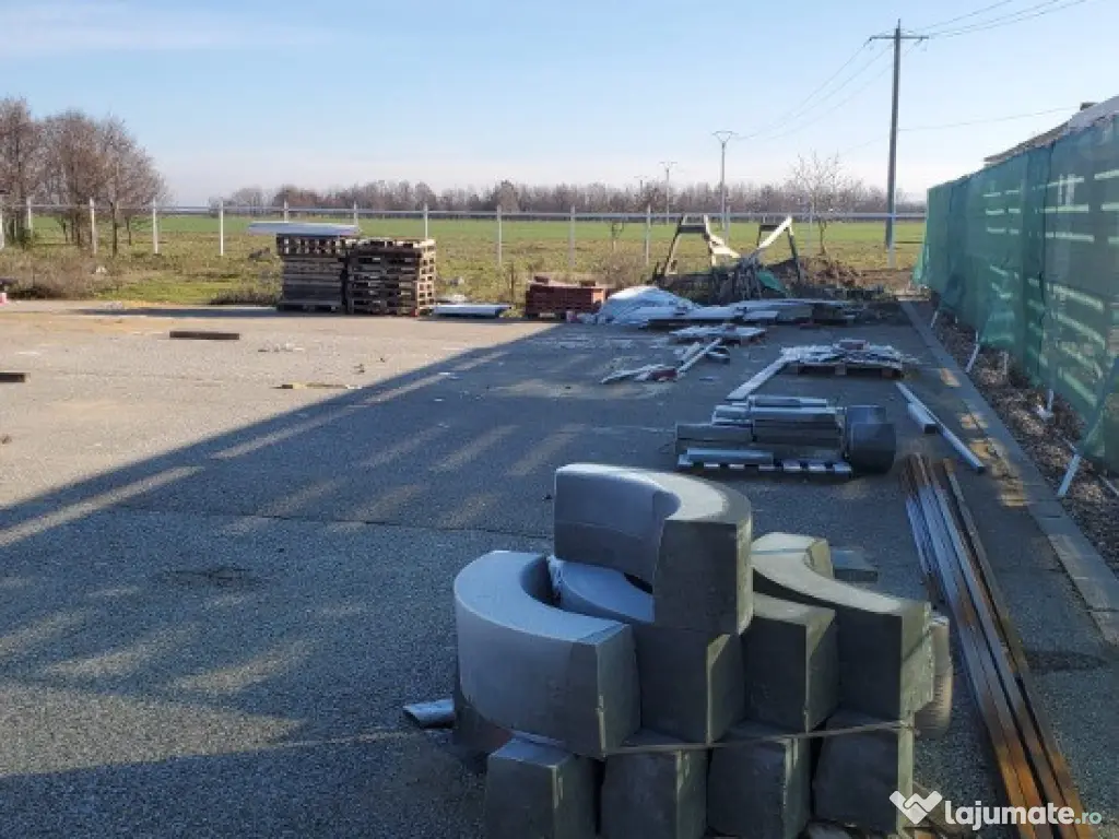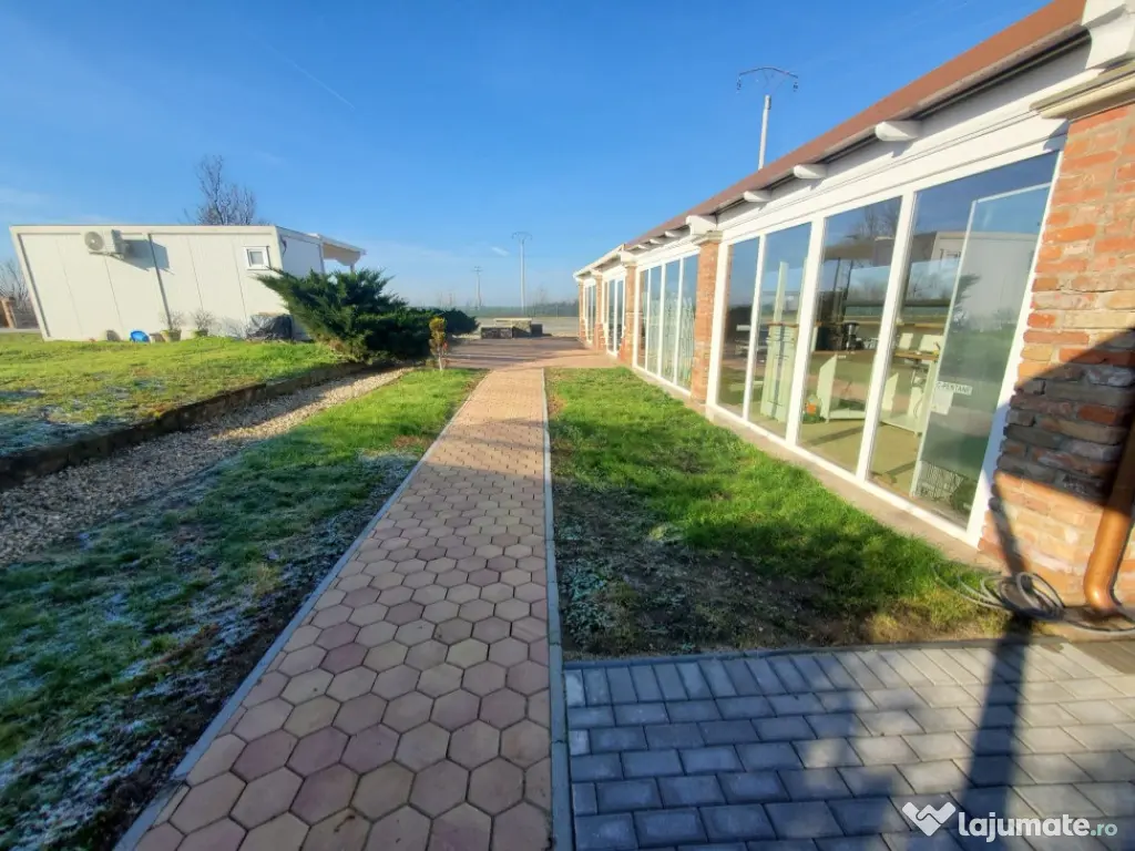 Vand teren cu constructii. Proprietatea în suprafata de 41.000 mp cu un fs de 390 ml, la DN Arad-Oradea situat în vecinătatea Domeniului Lupas. Are acces din DN 79 Arad-Oradea, branșament la apa de la rețea cât si propriile fântâni, curent si propria canalizare. În prezent este o zona administrativa tip container cu grup sanitar funcțională, o magazie, o terasa în suprafata de 560 mp care este în proporție de 90%finalizata. Grupuri sanitare și duș finalizate,zona parcare finalizata, împrejmuirea este gata pe o suprafață de 2.5 Ha unde este subtraversata toată linia de curent, inclusiv iluminatul stradal care este automatizat.Proprietatea are o suprafață de peste 6.000 mp pavaj +platforme betonate aprox 1.500 mp+ drumuri interioare asfaltate și pavate. Locația are autorizație de construcții si proiect pt construirea unei săli de evenimente în suprafata de 860 mp situată lângă terasa existenta și construirea unui alt grup sanitar. Pret : 29 euro/mp. ID : RH-35752-property