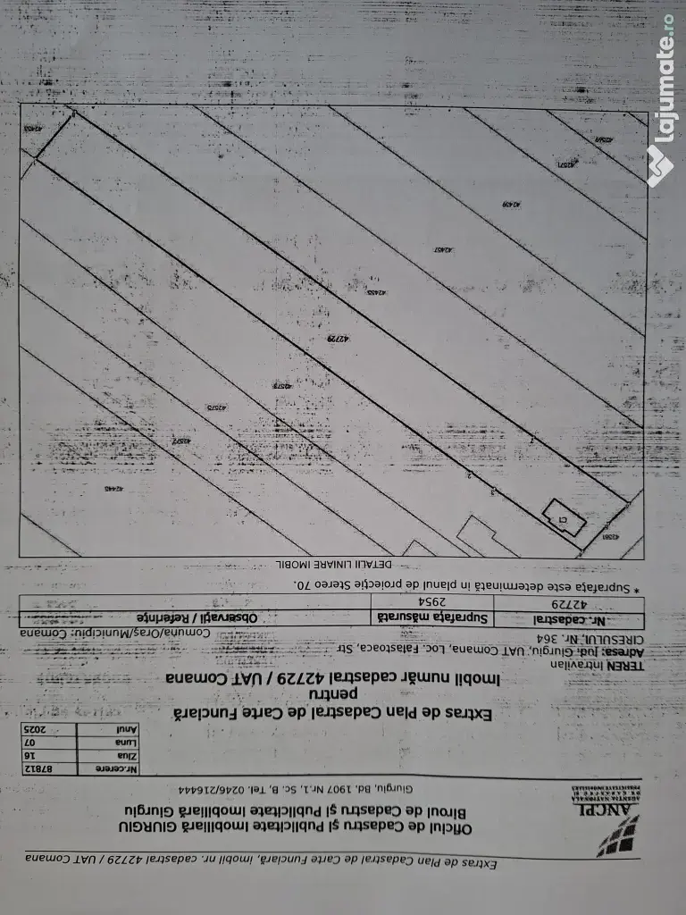 Casă demolabila si teren in suprafata de 2954 mp.intravilan .Casa este racordată la curent electric si se afla in Comana sat.Falastoaca jud. Giugiu tel.0726249124.si0726236159