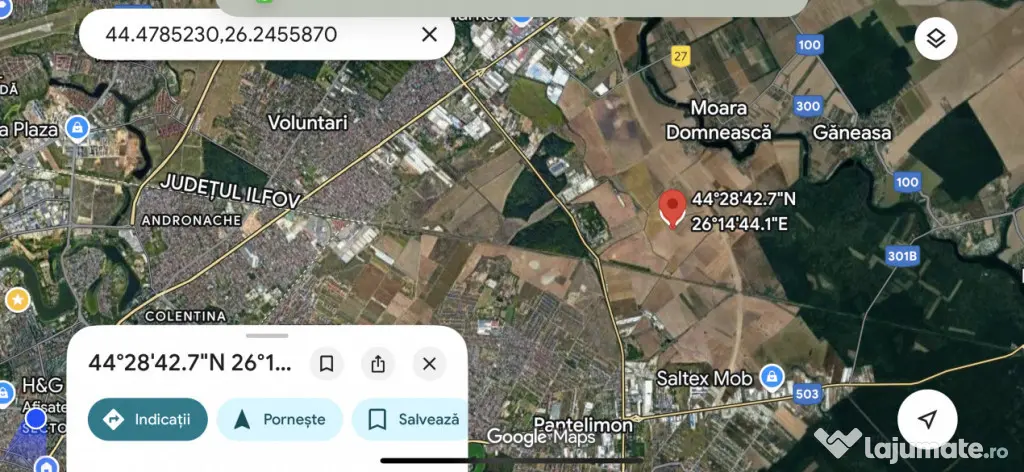 Teren de vânzare – 25.000 mp, Pantelimon, între cele două centuri ale Capitalei