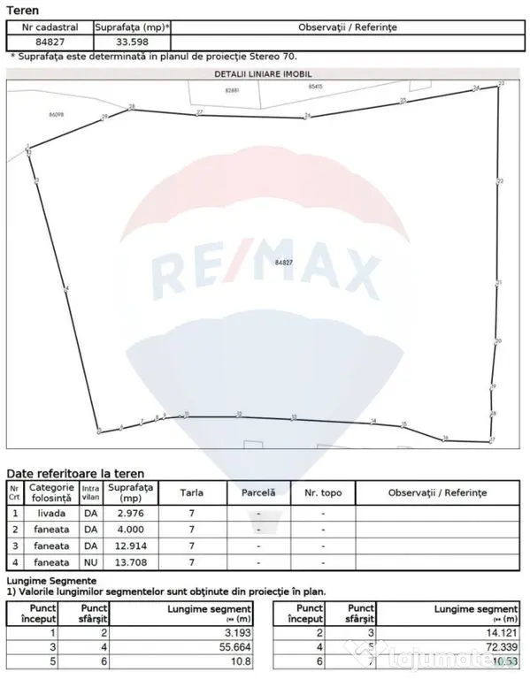 Vă propunem spre vânzare un teren amplasat într-o zonă liniștită și ușor accesibilă, cu o suprafață totală de 33.598 mp