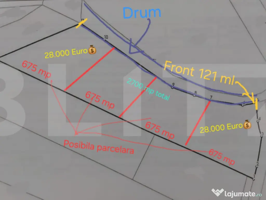 Blitz oferă spre vânzare teren intravilan cu suprafață 2700 mp, front 121 m, in Babutiu. Terenul dispune de o panorama către împrejurimi cu acces din drum public asfaltat. Are acces la utilitati precum apa, curent. Zona este perfecta pentru o locuinta unifamiliala sau investite. Se poate vinde integral sau se poate parcela in bucati de 675 sau 900 mp. Nu rata ocazia si programeaza o vizionare acum. Cod ofertă / ID BLITZ: P156490 Id intern: P156490