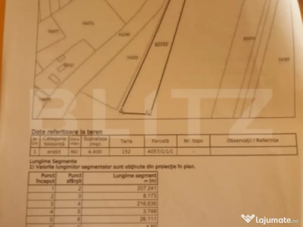 Blitz vă oferă spre vânzare un teren extravilan cu o suprafață de 4400 mp, situat într-o zonă strategică, în apropierea orașului Aiud, cu acces direct la drumul european E81 și la autostrada care leagă principalele orașe din regiune. Datorită poziției sale, acest teren este ideal pentru diverse activități economice, cum ar fi construcția unei hale de producție, depozit sau centre logistice, având în vedere accesibilitatea facilă la infrastructura rutieră. Terenul beneficiază de un peisaj ușor accesibil și este perfect pentru dezvoltarea unor proiecte industriale sau comerciale, oferind posibilitatea unei dezvoltări rapide datorită apropierii de drumuri principale și de infrastructura urbană existentă. Aceasta este o oportunitate excelentă pentru investitori care doresc să construiască într-o zonă cu potențial economic ridicat și accesibilitate bună la resursele de transport. Pentru mai multe detalii sau pentru a programa o vizionare a terenului, vă invităm să ne contactați! Cod ofertă / ID BLITZ: P127086 Id intern: P127086