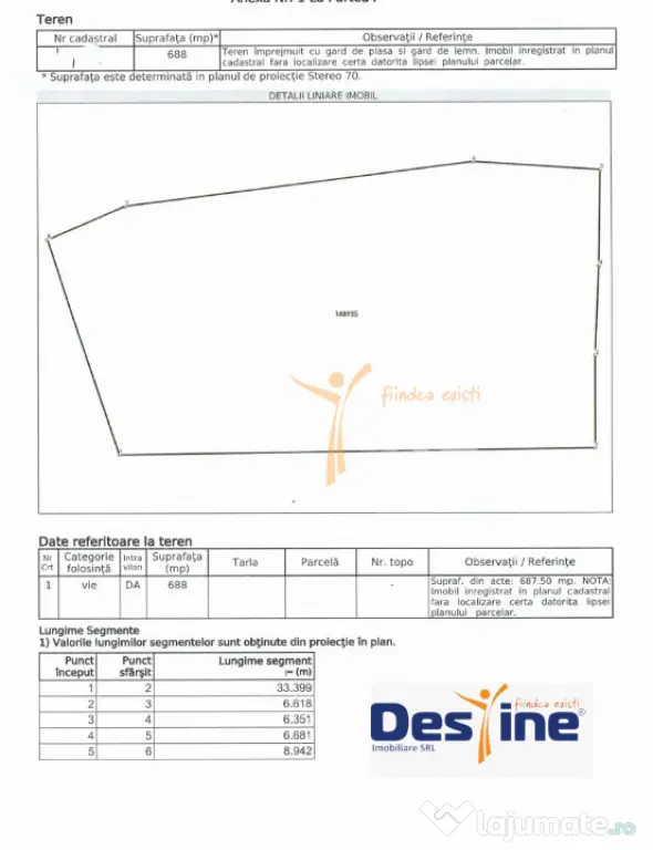 DESTINE IMOBILIARE Iași vă recomandă un TEREN INTRAVILAN avand o suprafata de 688 mp, în BUCIUM.