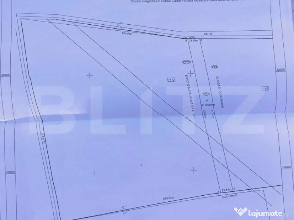 BLITZ propune spre vânzare un teren intravilan 7500 mp, situat in apropiere de o zona de case mai exact pe Aleea 1 Craiova, în localitatea simnicul de sus, la 10 minute de centrul orașului. Terenul are un front de 24 ml iar ca utilități avem următoarele: apa și curentul electric la doar 200 mp, gazele la stradă, iar canalizarea la strada principală. Există și posibilitatea achiziționării în bloc sau parcelat cu un preț aplicat pe varianta aleasă. Vă așteptăm cu mai multe detalii la vizionare. Cod ofertă / ID BLITZ: P100184 Id intern: P100184