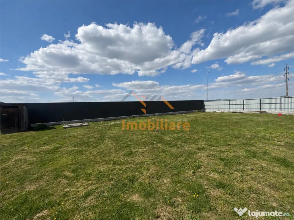 Imprejmuit din tabla zincata, poarta cu acces direct la drum pietruit.