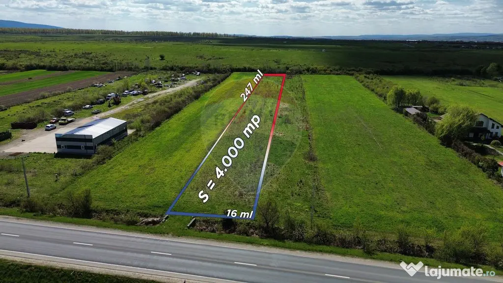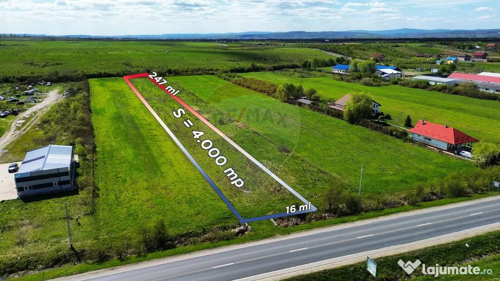 Suprafața terenului este de aproximativ 4000 mp (16 ml front stradal x 247 ml lungime), având o formă regulată, ideală pentru construcții rezidențiale sau investiție.