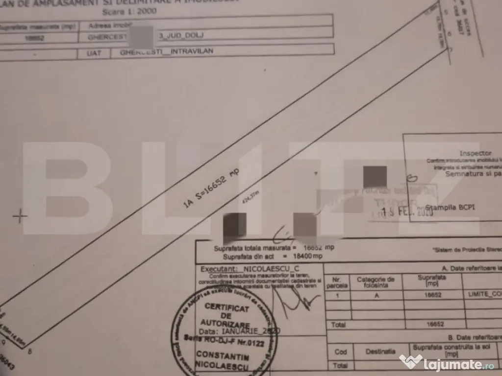 BLITZ ofera spre vanzare teren intravilan in suprafața de 16.652 mp și deschidere de 45 metri la strada, la intrarea in ghercesti, dinspre giratoriul drumului experess Craiova-Pitesti. Terenul este amplasat într-o zonă strategică, cu acces rapid către infrastructura de transport majoră si beneficiază de două variante de acces către drumul express, (2 km distanta pe strada craiovei si 1.5 km pe strada aviatoriilor), ceea ce facilitează conectivitatea și crește atractivitatea pentru proiecte rezidentiale, comerciale sau industriale. Regimul economic este de zona destinata constructiilor de locuinte si functiuni complementare, cu un P.O.T de 35% si 1.05% CUT, rezultand astfel o suprafata construibila de 12000 mp, cf. ultimului urbanism. În plus, proximitatea drumului expres Craiova-Pitești dar si vizibilitatea ridicata dinspre autostrada, adaugă un avantaj suplimentar, oferind perspective excelente de dezvoltare și creștere a valorii investiției. Datorită poziționării și prețului competitiv, acest teren reprezintă o alegere inteligentă pentru investitorii care caută oportunități cu potențial ridicat într-o zonă în plină dezvoltare! Cod ofertă / ID BLITZ: P138191 Id intern: P138191