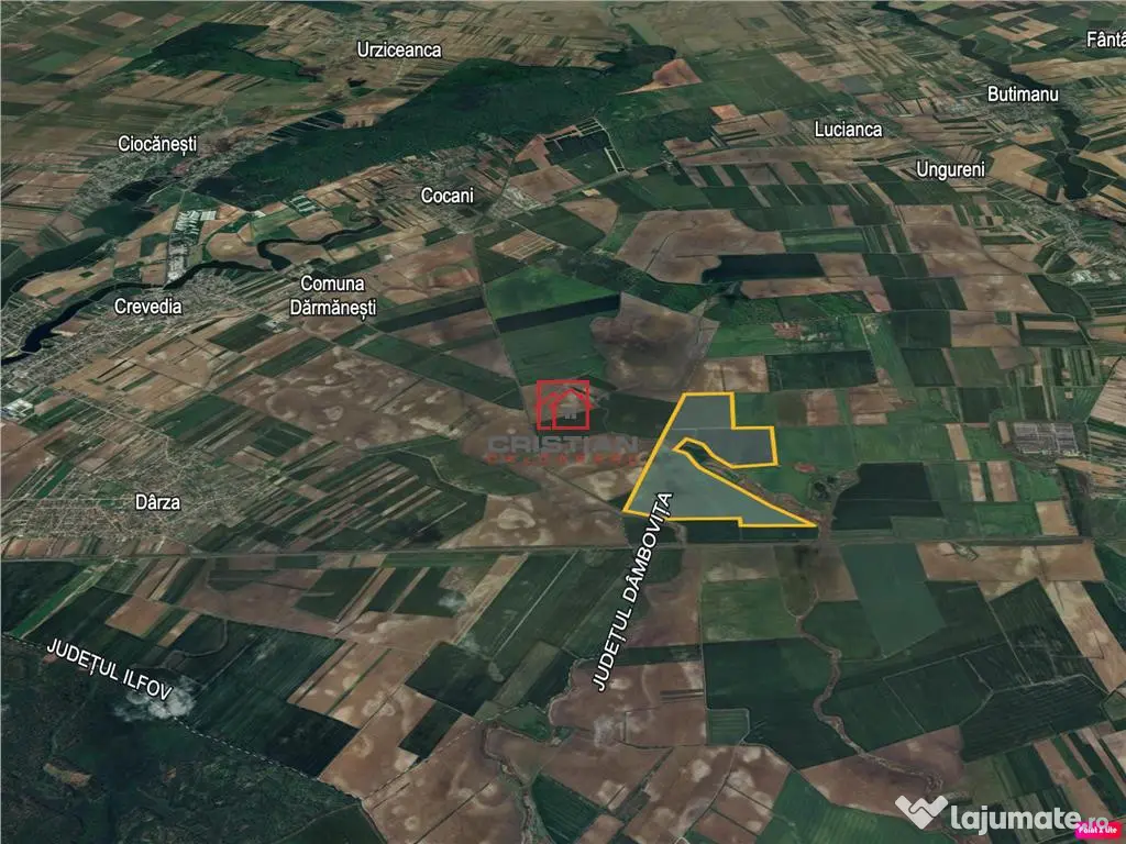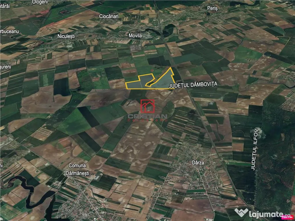 Vanzare teren Peris - Crevedia, Ilfov. Proprietatea este compusa din teren extravilan suprafata 1.080.000mp(108Ha), deschidere 2.000ml, localizat la circa 4.5km din DN1A, Bucuresti Ploiesti. Terenul se preteaza pentru construire cladiri cu destinatie: agricola. Pret vanzare - 4.860.000euro TVA COMISION AGENTIE 3%