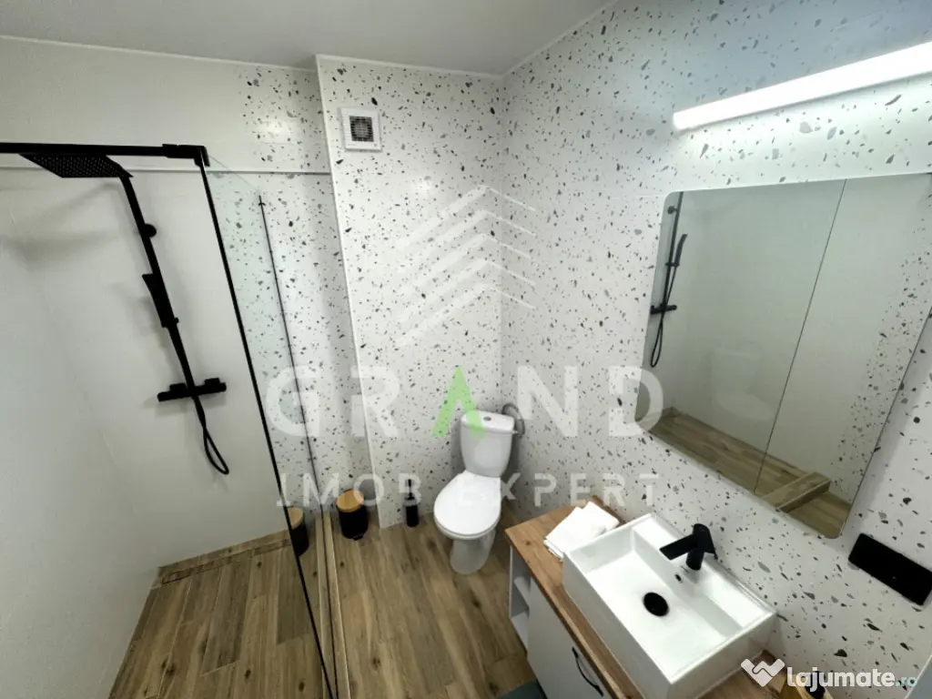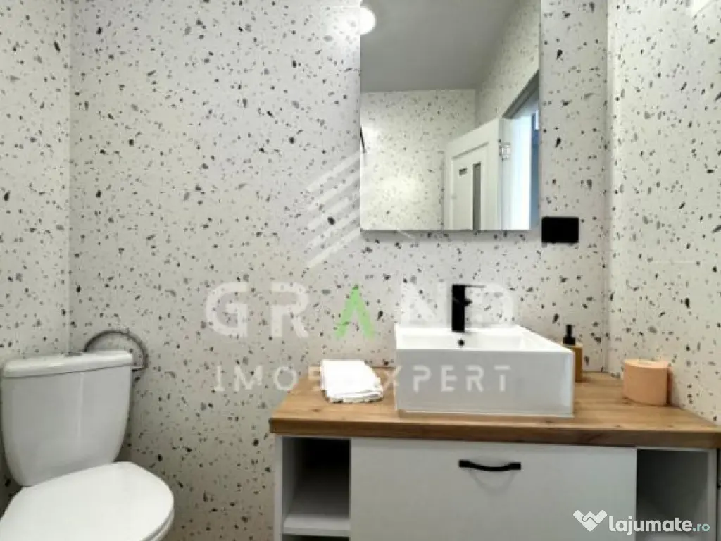 TOTUL NOU | Studio spațios 45 mp | Parcare inclusă | Zonă Kaufland/Frunzișului/USAMV Nu este doar un apartament. Este locul în care ajungi și simți, din prima clipă, că totul este exact cum trebuie. Situat într-un imobil nou, finalizat în 2024 (S+D+P+4E), acest studio generos îți oferă mai mult decât un spațiu de locuit — îți oferă lumină, liniște și funcționalitate reală. Orientarea sudică aduce soare pe tot parcursul zilei, iar compartimentarea inteligentă transformă fiecare metru pătrat într-un avantaj. Totul este nou. Totul este pregătit pentru tine. Este amenajat modern, cu canapea extensibilă, Smart TV și aer condiționat — un spațiu perfect atât pentru relaxare, cât și pentru lucru de acasă. Zona de dormit este dotata, cu pat confortabil și saltea de calitate, gândită pentru odihnă reală. Bucătăria este complet mobilată și utilată, exact ca în poze: plită electrică, cuptor, hotă, cuptor cu microunde, combină frigorifică, mașină de spălat haine și aparat de cafea — plus loc de luat masa, pentru momentele tale de liniște. Ai în plus un dressing generos, baie spațioasă cu finisaje moderne și un balcon, unde îți poți începe diminețile sau încheia serile. ✔ Suprafață generoasă, bine compartimentată 45 mp + 4 mp balcon ✔ Etaj 1 din 4, bloc cu lift ✔ Parcare subterană inclusă în preț ✔ Mobilat și utilat complet – exact ca în fotografii ✔ Vecini liniștiți, imobil nou, bine întreținut Locația este un mare plus: la câteva minute de Kaufland Mănăștur, Lidl Frunzișului, USAMV și UMF, aproape de complexul Big și cu stație de autobuz chiar în fața blocului. Ai acces rapid către toate punctele importante din oraș. Este alegerea ideală pentru o persoană activă sau un cuplu care caută confort, accesibilitate și un spațiu modern, fără compromisuri. Disponibil imediat. Te invităm cu drag la vizionare — s-ar putea să fie exact ce cauți. Id intern: P153768 Confort: 1 Tip imobil: Bloc de apartamente Nr. locuri parcare: 1