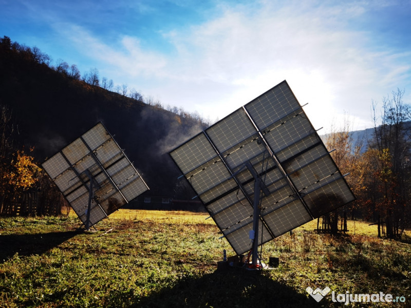 Trackerul mută automat panourile pe tot parcursul zilei, astfel încât acestea să fie mereu orientate optim spre soare, fără să trebuiască să faci tu vreo ajustare. Practic, panourile produc cu până la 40% mai multă energie decât dacă ar fi montate pe un cadru fix.